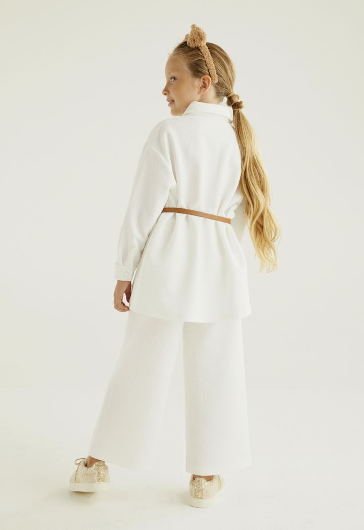 A textured anagram shirt that is best styled with the matching pair of pants.