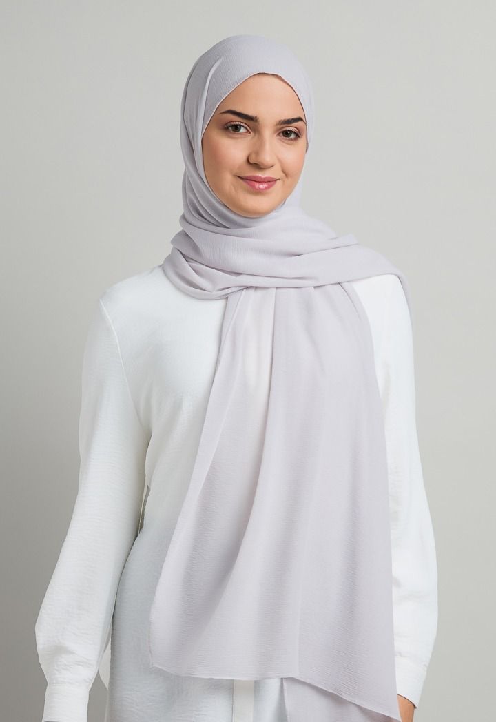 A modern hijab that features a textured chiffon design to match it with your winter attires.
