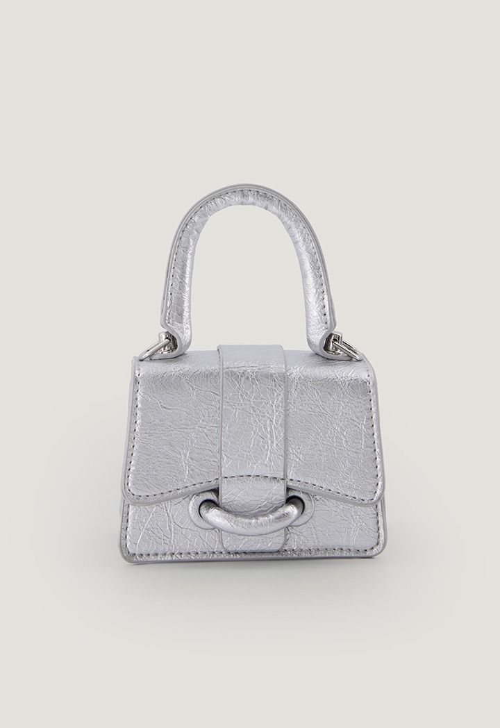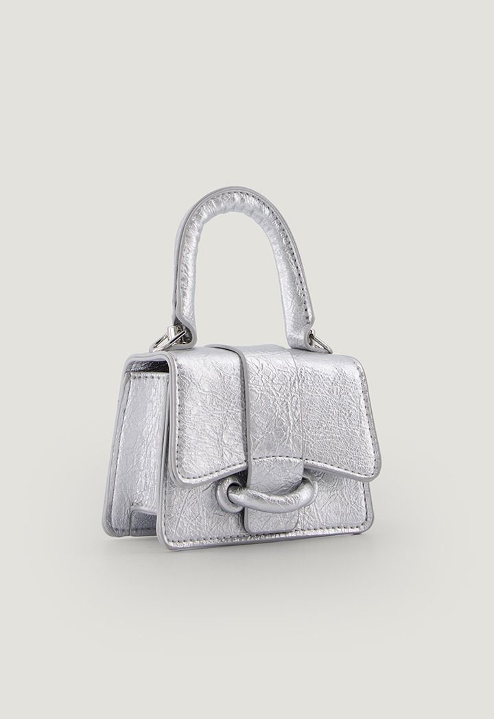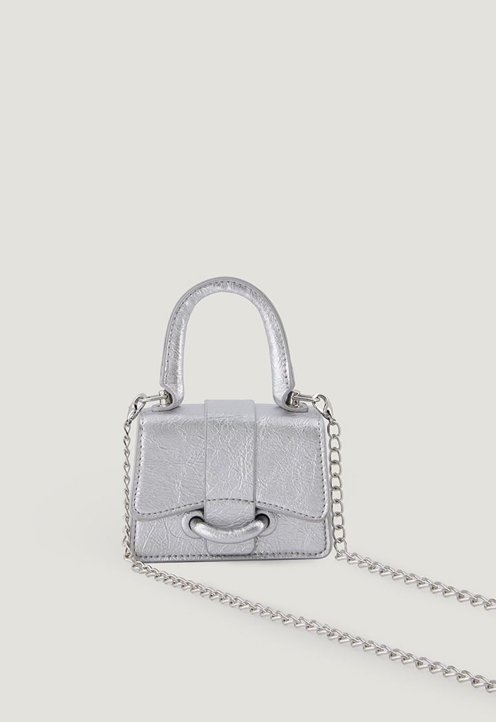 Textured mini bag with interlocking clasp and chain shoulder-ultimate chic treasure for stylish little queens.