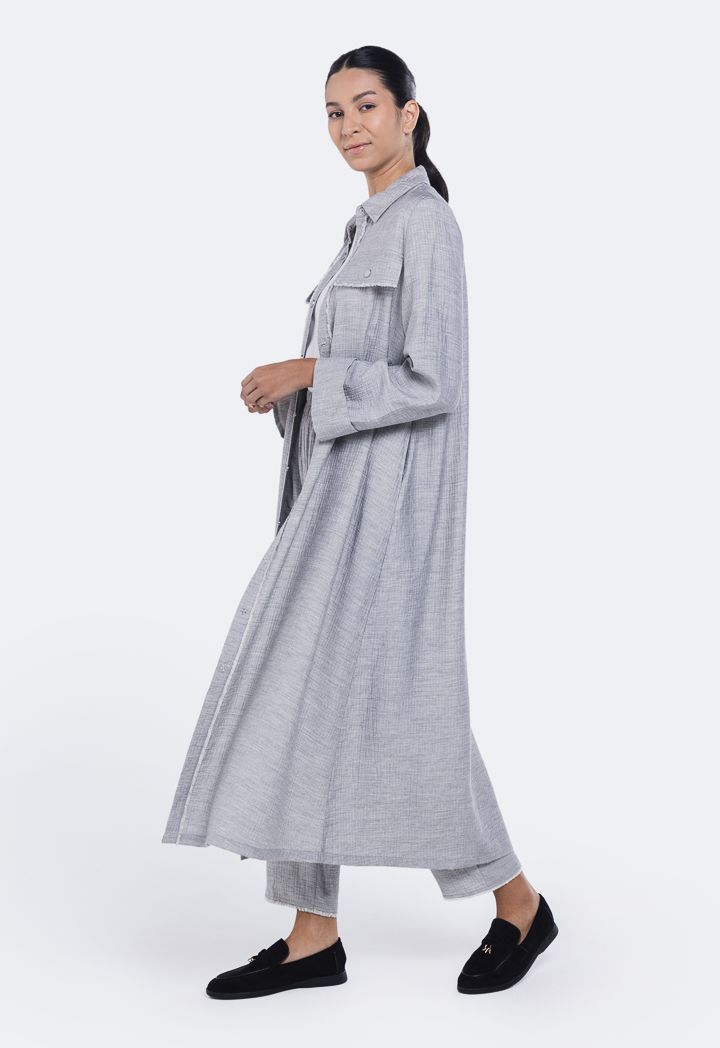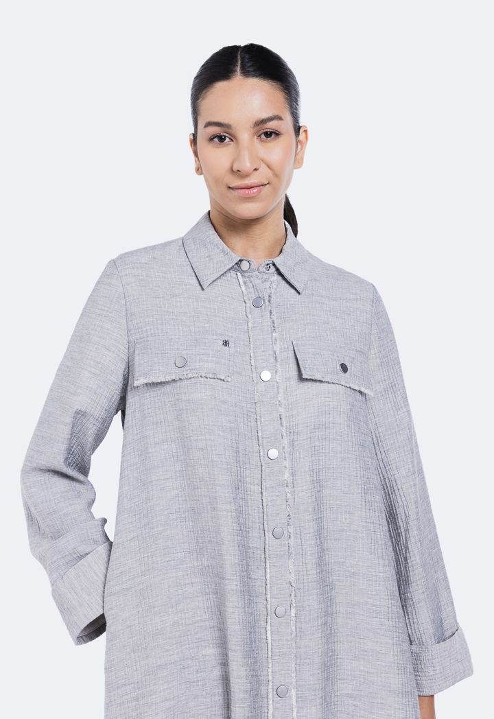 Elevate your wardrobe with this chic shirt dress. Tasteful, and exclusive, this is the perfect dress for you.