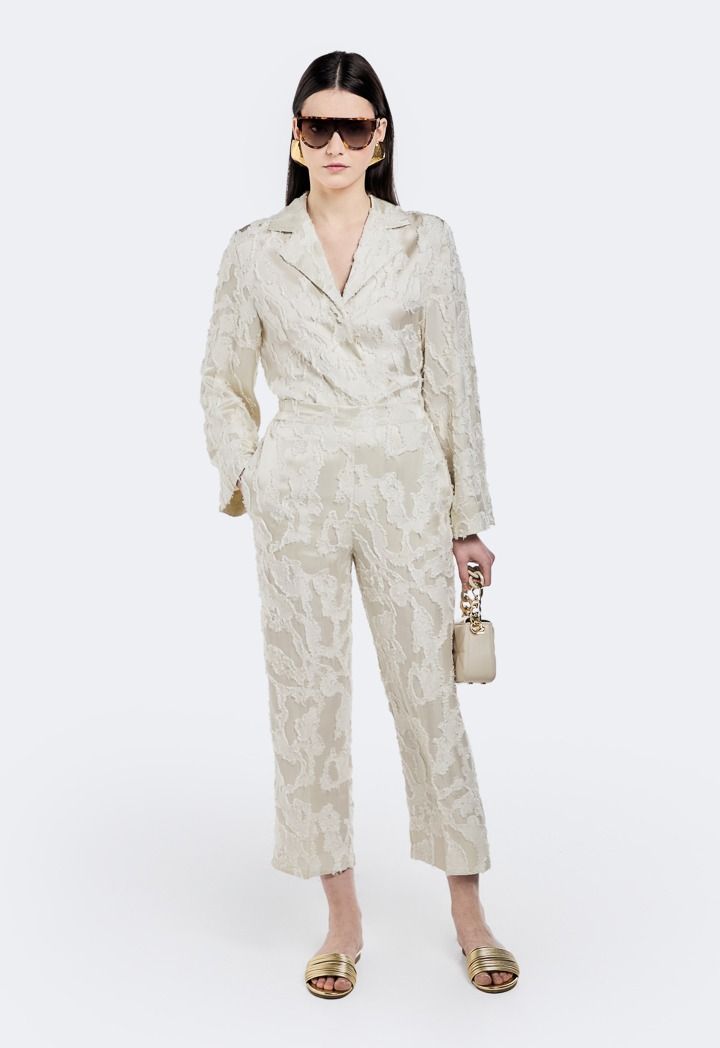 This Blazer redefines tailoring with a contemporary flair and a luxurious jacquard finish. Its sharp silhouette and textured fabric bring depth and dimension to your wardrobe.