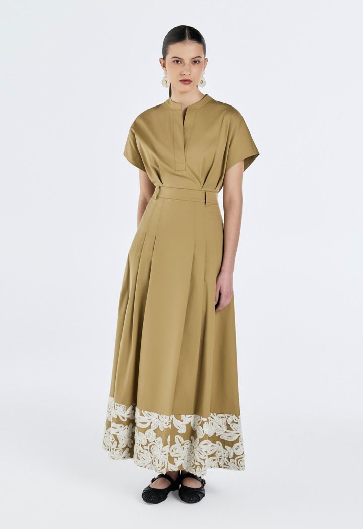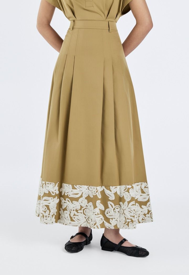 Design: Two-Tone, Textured Lace Embellished, Pleated, Flared