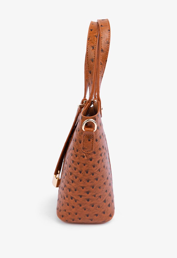 Design : Ostrich Textured, Top Handles, Shoulder Strap, Open Center
