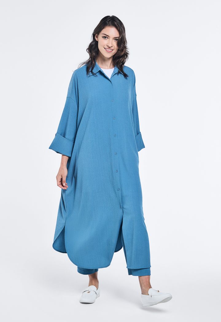 Design: Solid, Textured, Oversized, Drop Shoulder, Side Slits