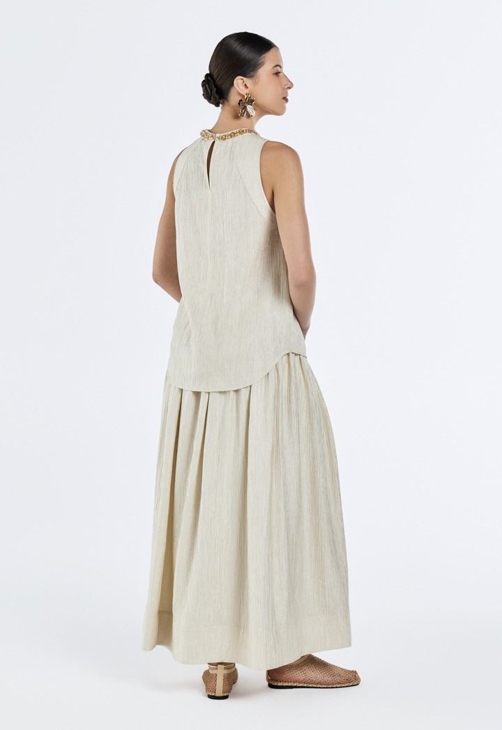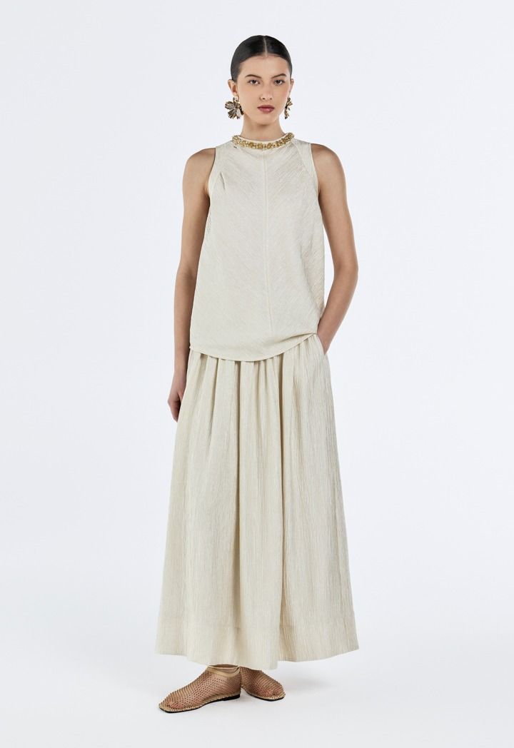 Subtle beading and plissé texture elevate any outfit with effortless style.