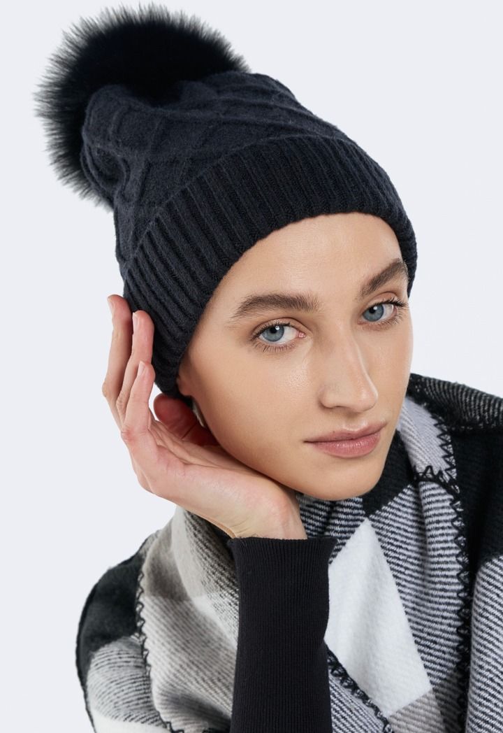 Textured Pom Pom Beanie