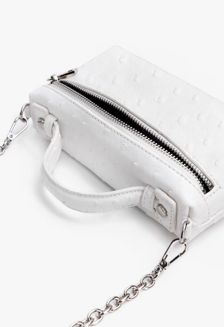 Include this chain bag in your accessory collection and amp up your style quotient. This attractive and easy-to-carry bag is designed keeping in mind your needs. Furthermore, it is crafted from quality material and features a textured pattern that accentuates its look.
