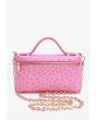 Design : Textured, One main compartment, top carry handle, Chain link shoulder strap, Interior zipped pocket Closure : Zipper
