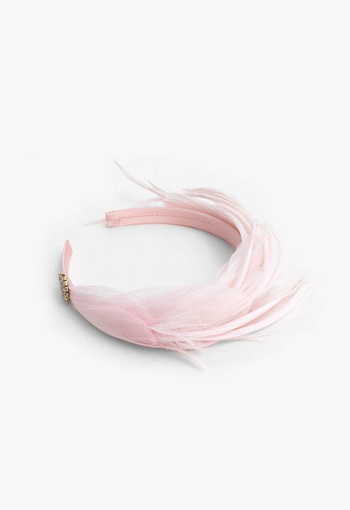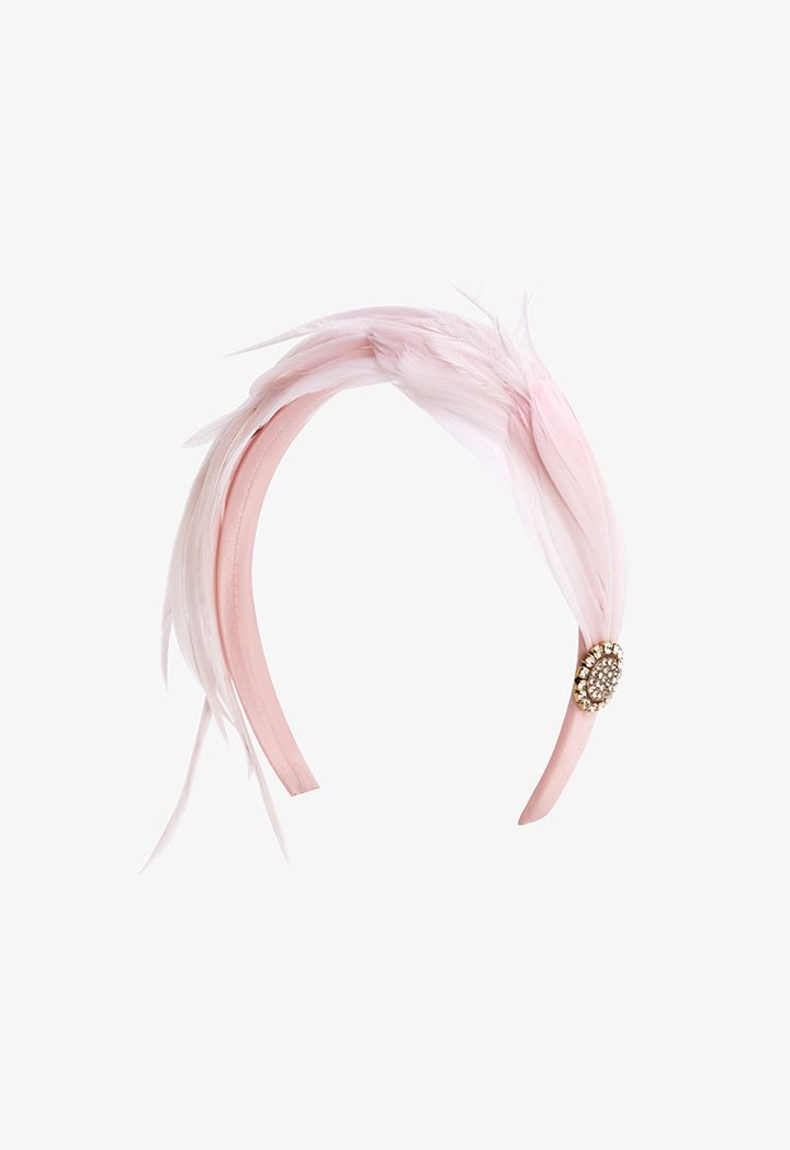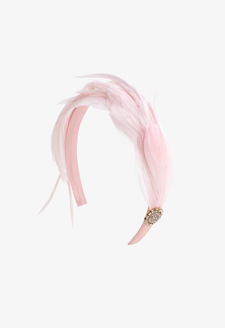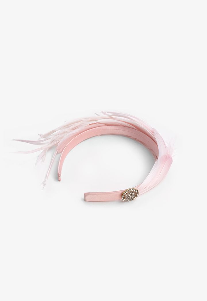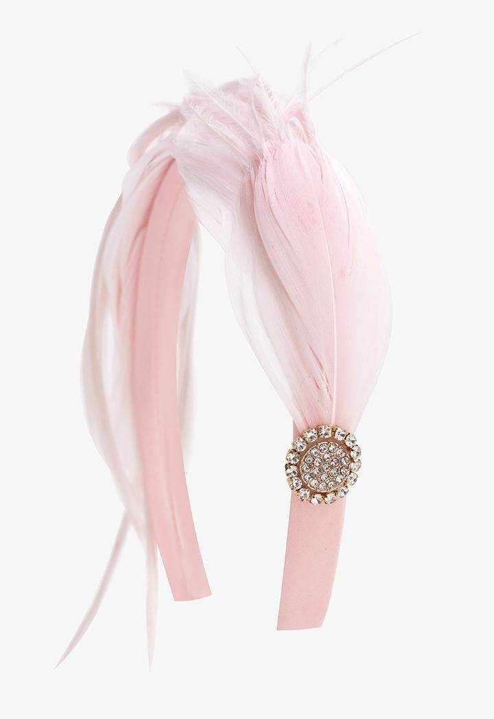 Thin Embellished Faux Feather and Crystal Headband |
