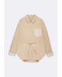 Design: Solid, Stripe Details, Patch Pocket, Tie-Belt, Drop Shoulder