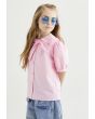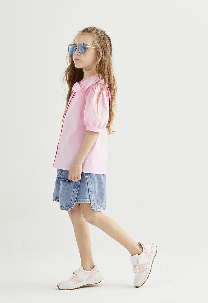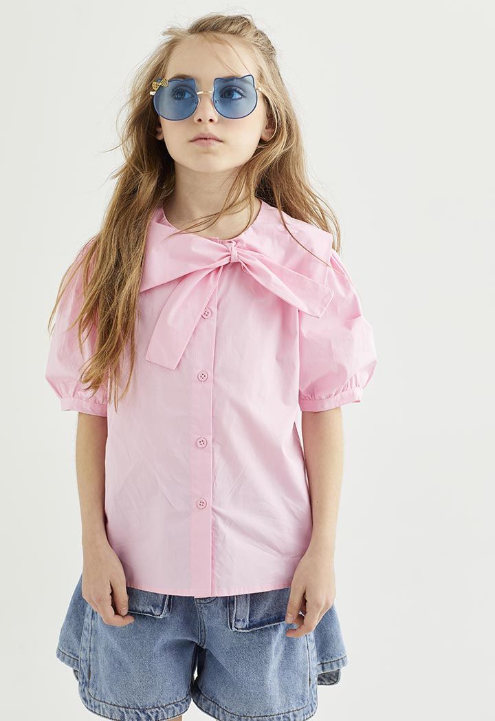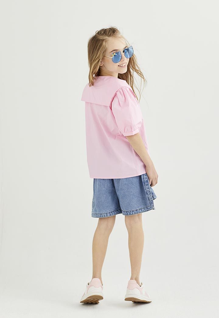 A solid shirt with a tie collar that would make it the go to basic piece in your daughters closet.
