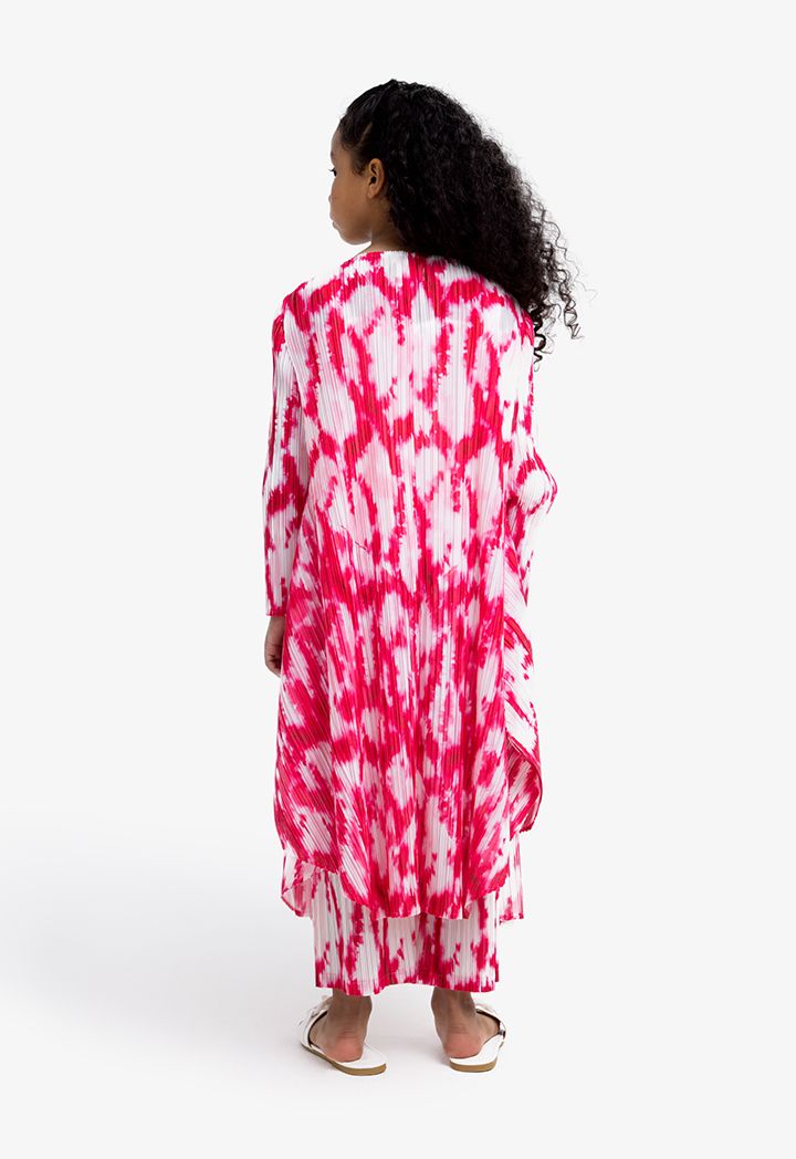 Design: Tie Dye, Pleated, Side Pockets, Slit Hem