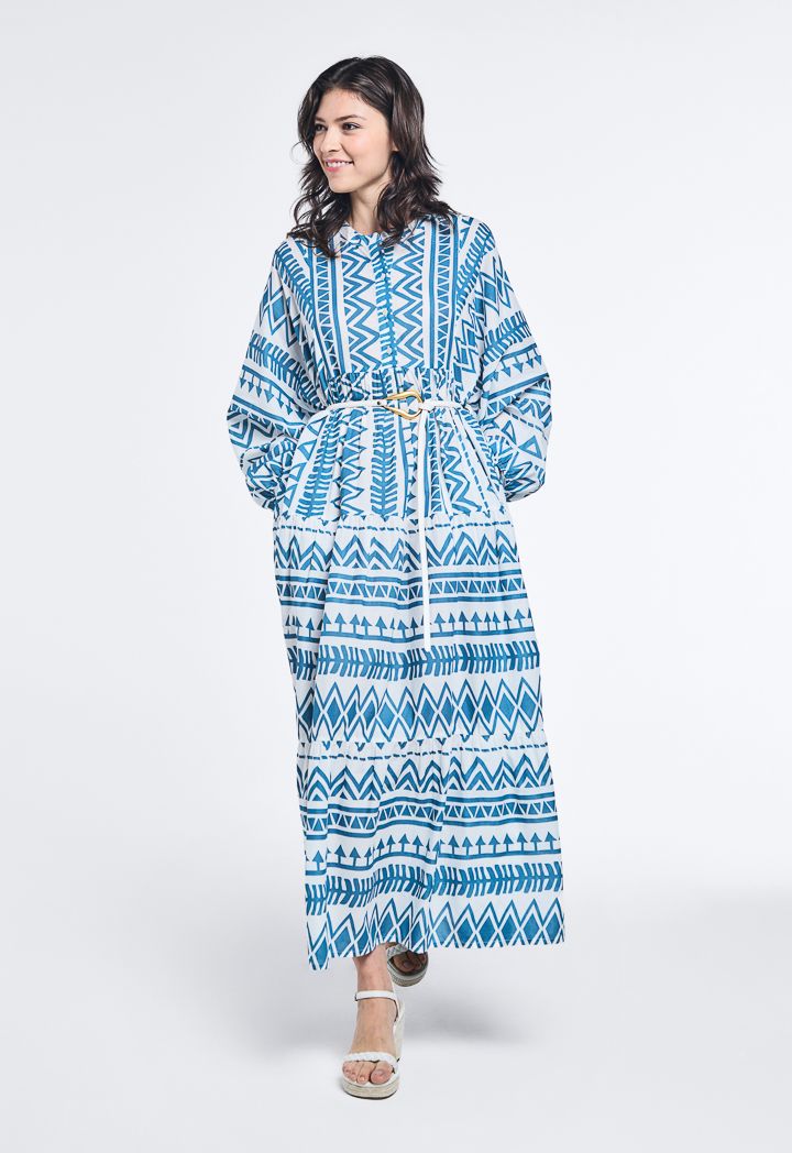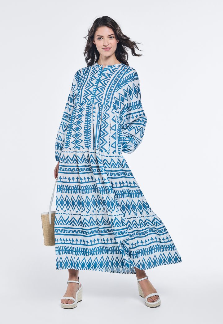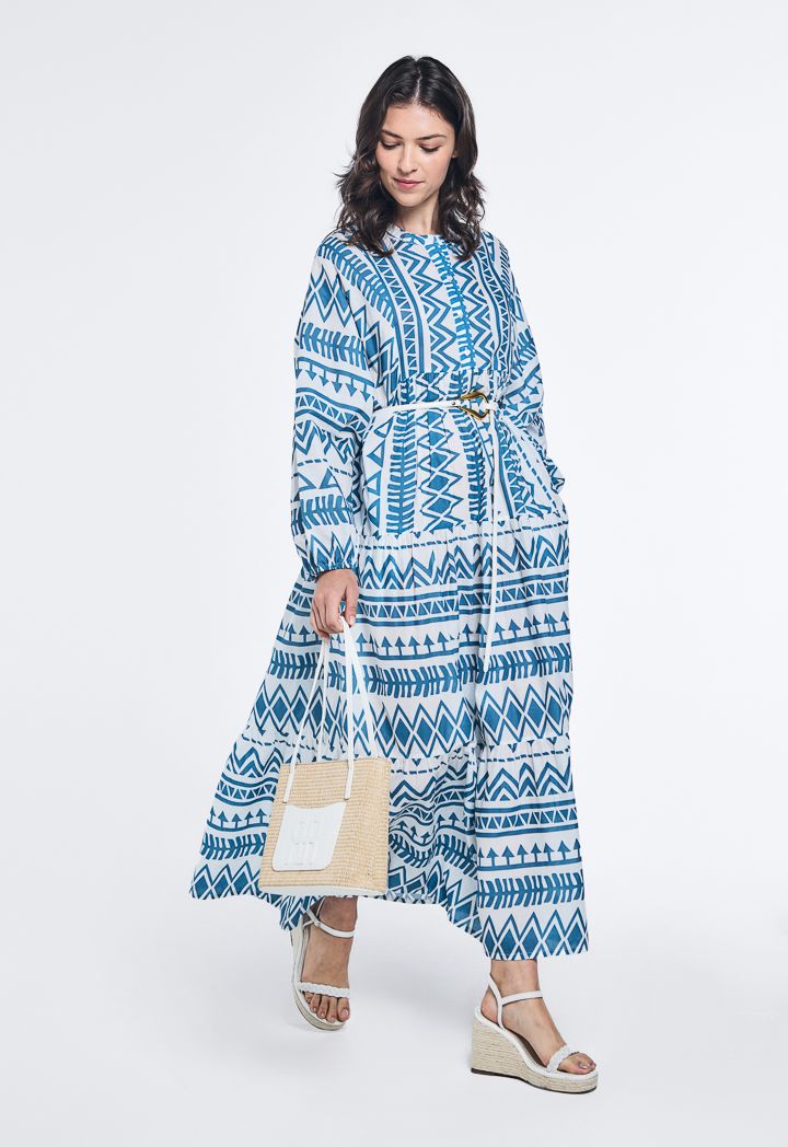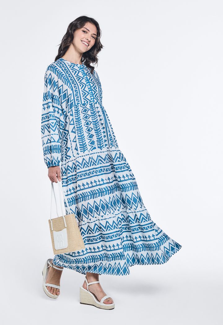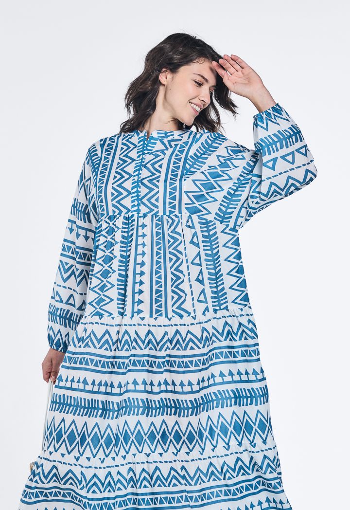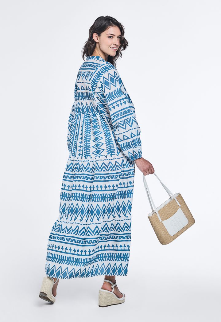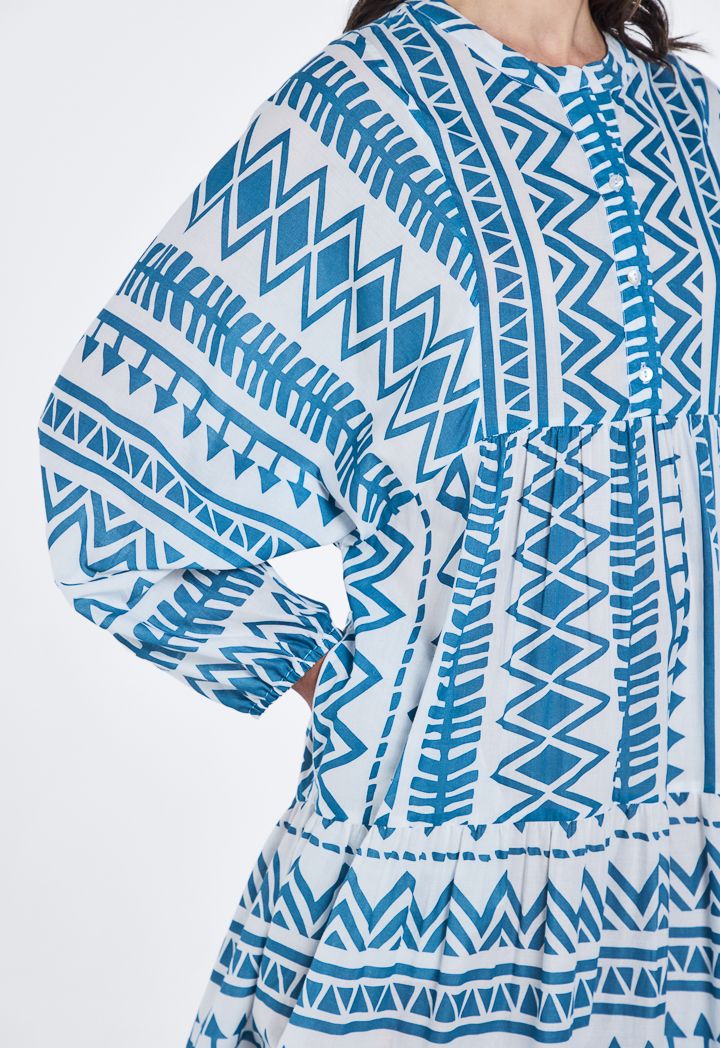 Design: Geometric Print, Tiered, Oversized, Flared