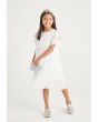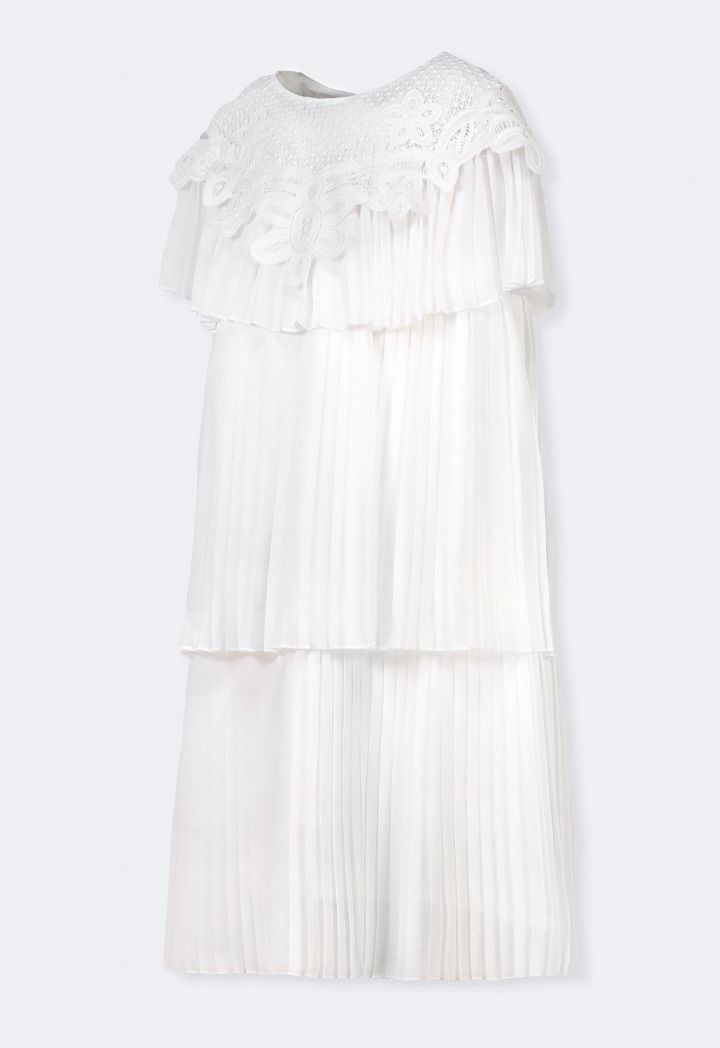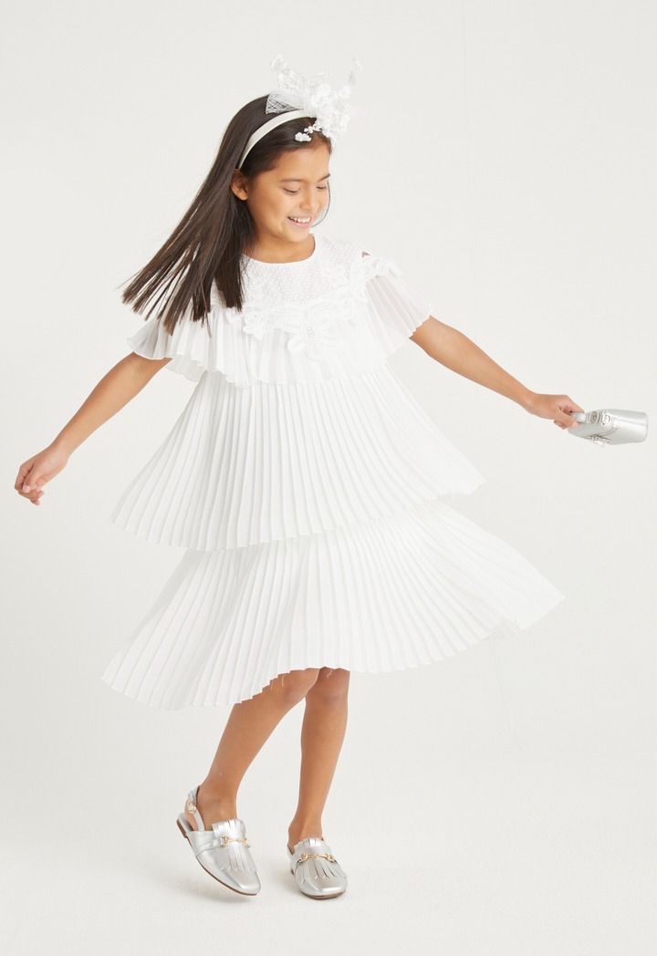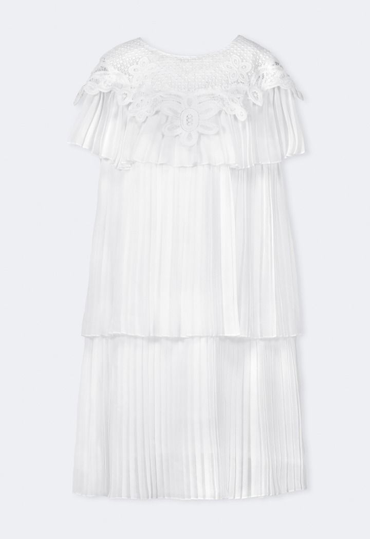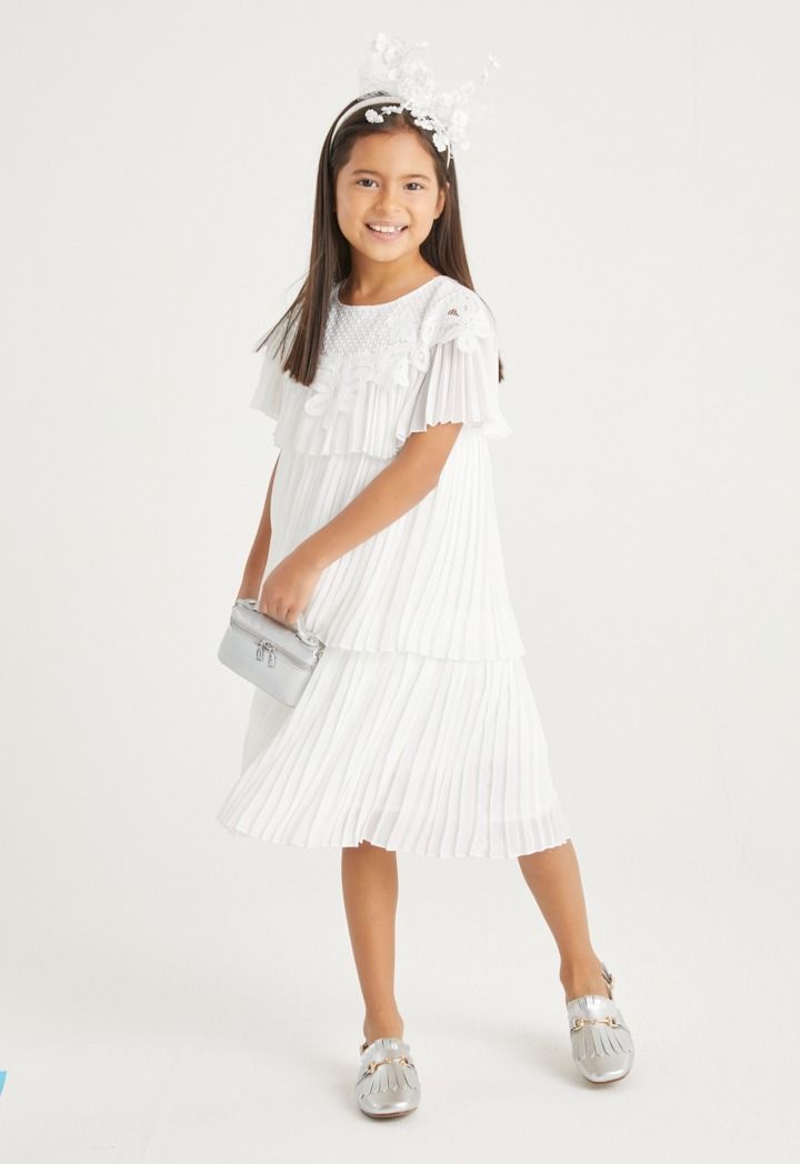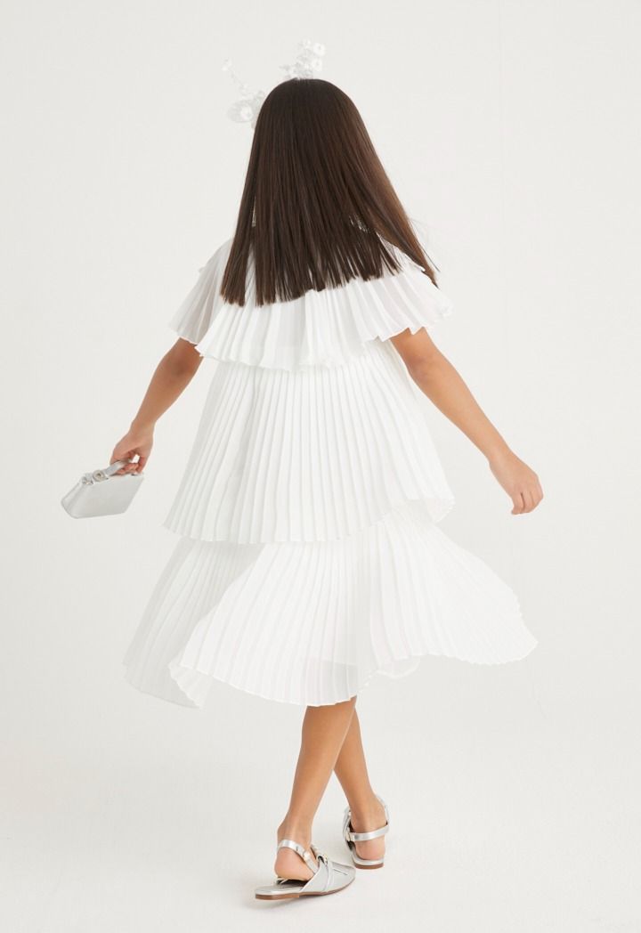 The perfect mix of simplicity and class is in this dress, an embroidered neck and a tiered pleated design.