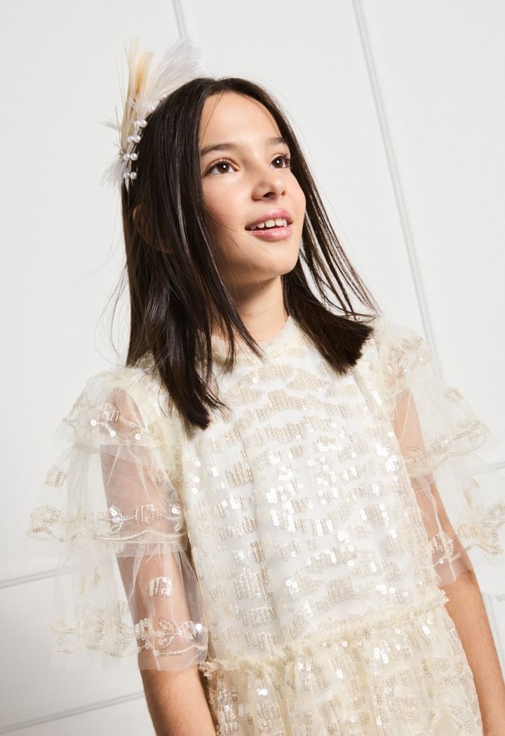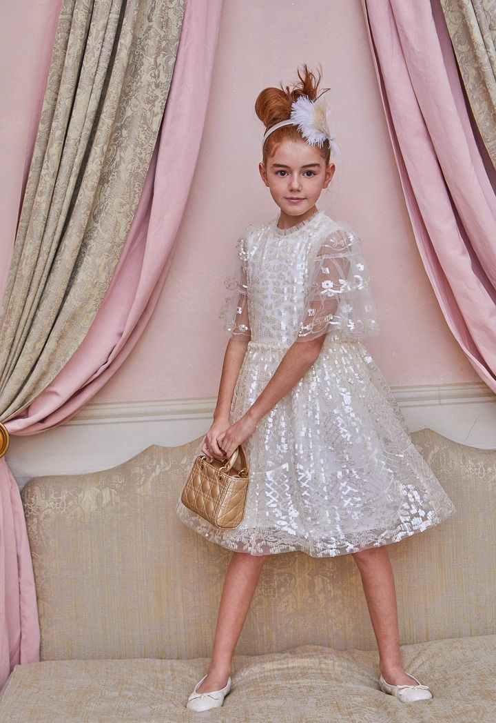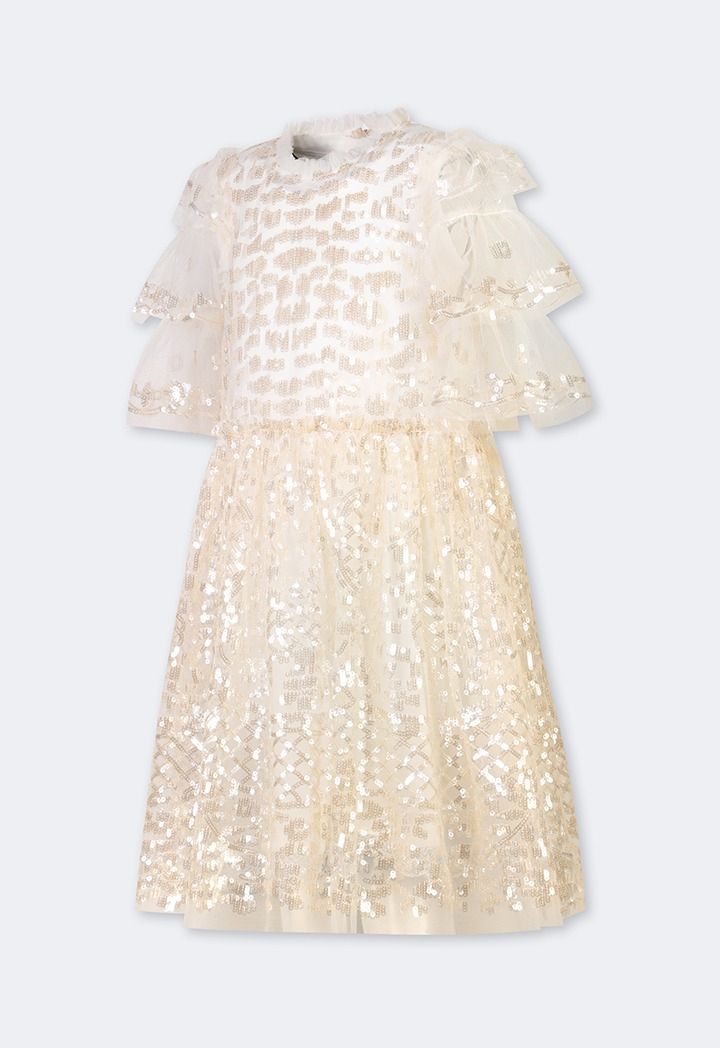 Just the correct amount of sparkle and elegance with this tiered dress that is sure to steal the eye whenever your little girl puts it on.