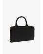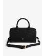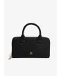 A solid pouch that features a top handle, inner compartments and a shoulder strap.