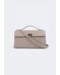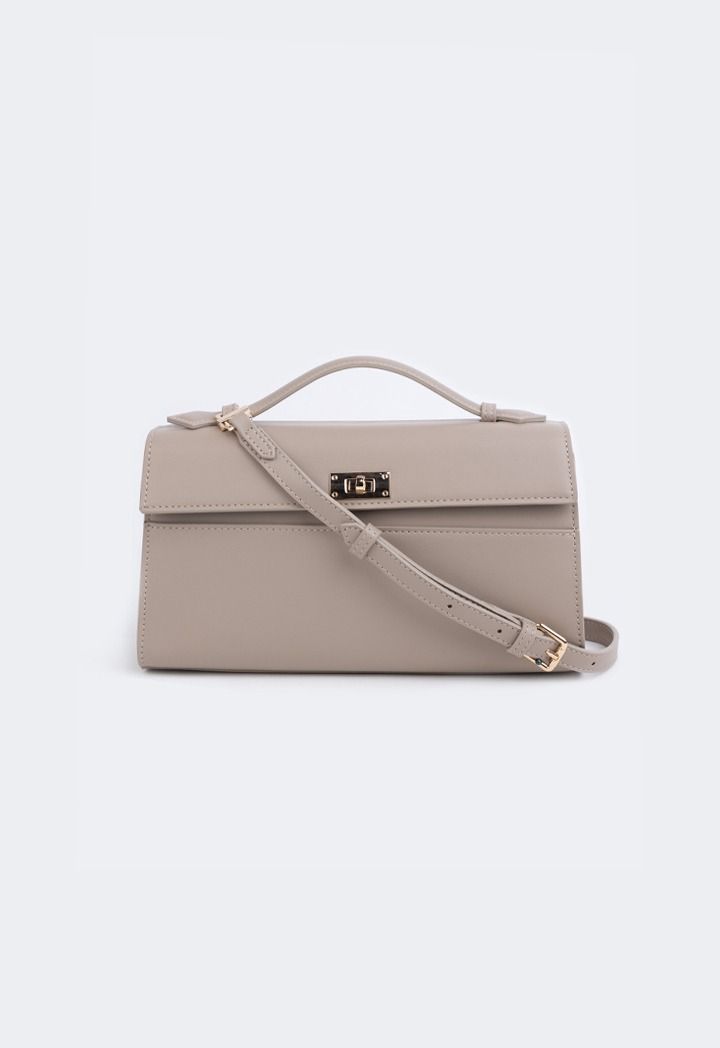 A luxurious choice for a clutch , featuring a solid PU leather design and a metallic lock in the center.