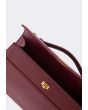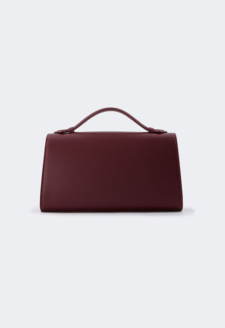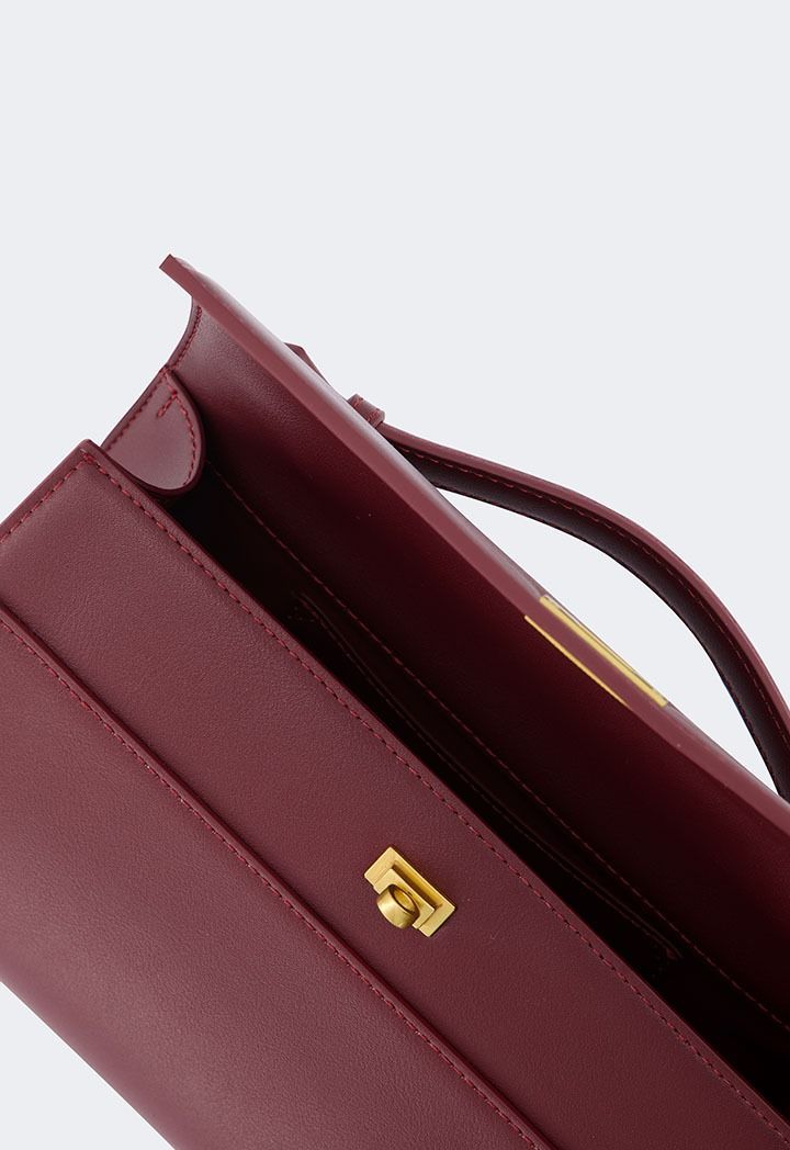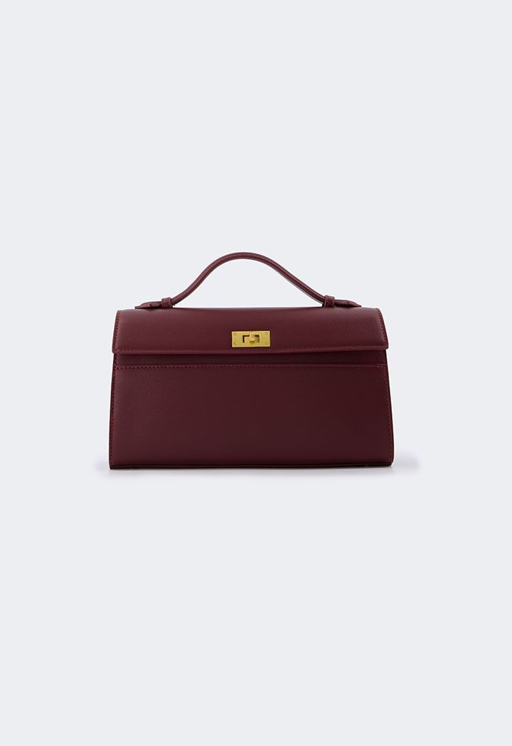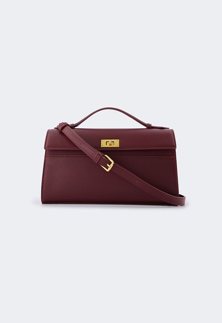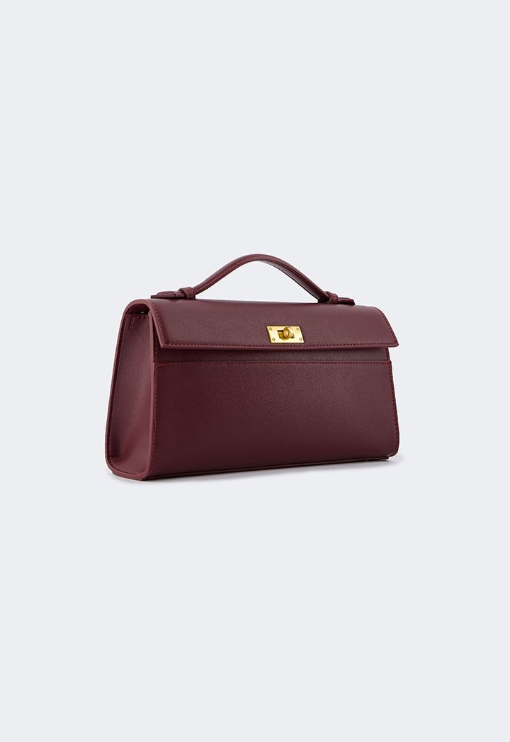 A luxurious choice for a clutch , featuring a solid PU leather design and a metallic lock in the center.