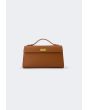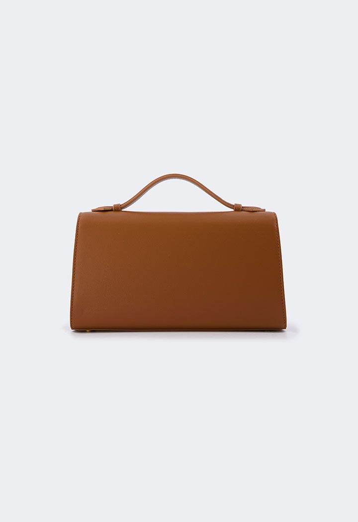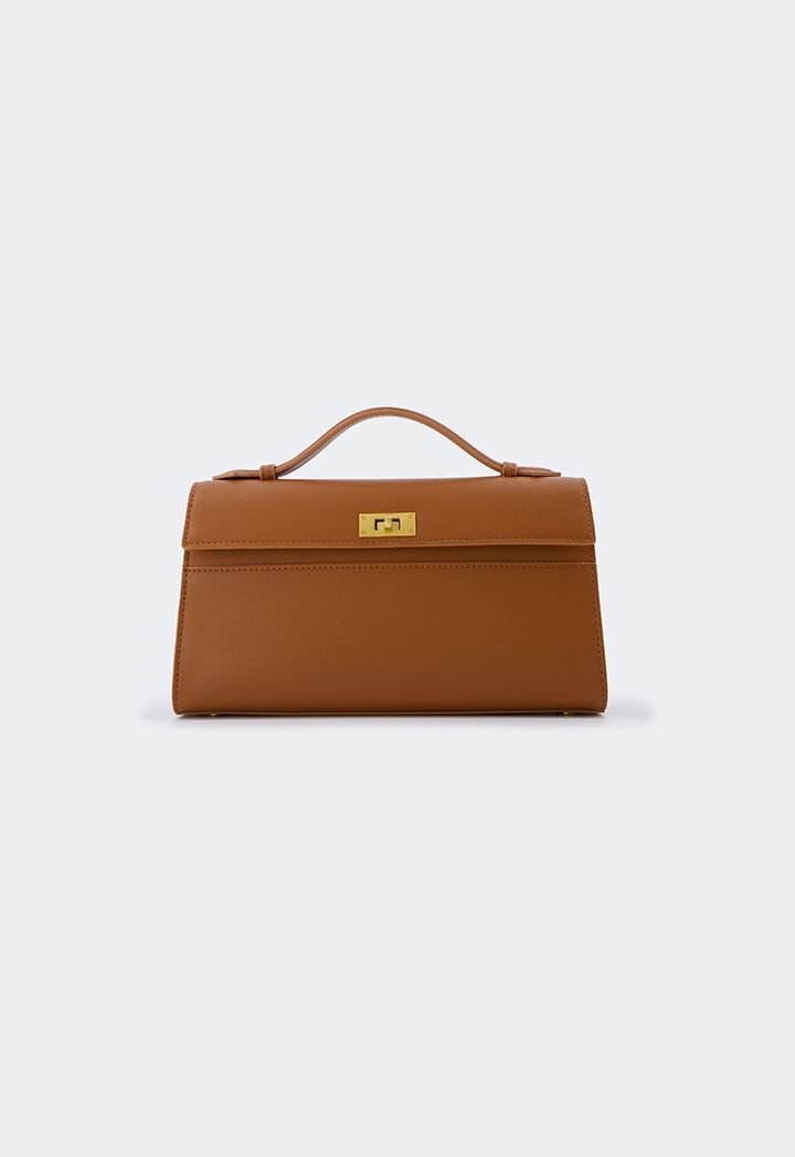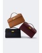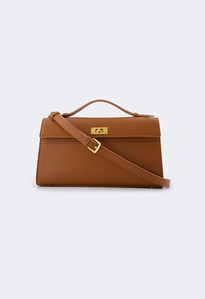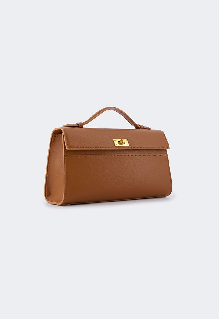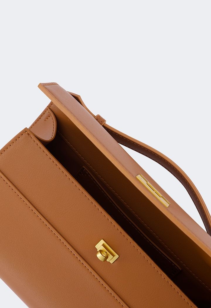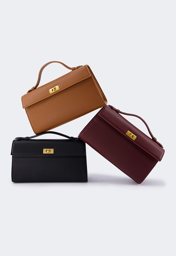 A luxurious choice for a clutch , featuring a solid PU leather design and a metallic lock in the center.