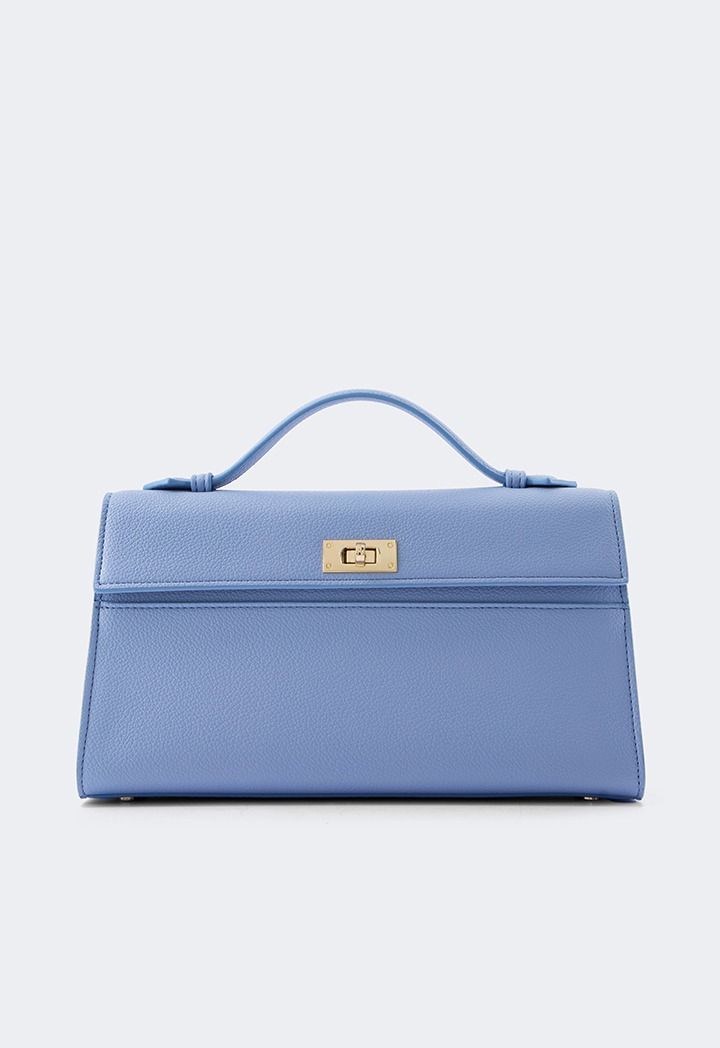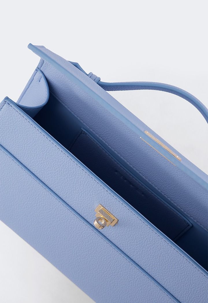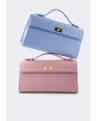 A luxurious choice for a clutch , featuring a textured PU leather design and a metallic lock in the center.