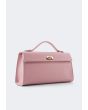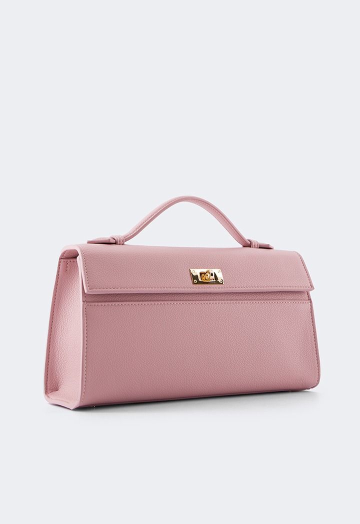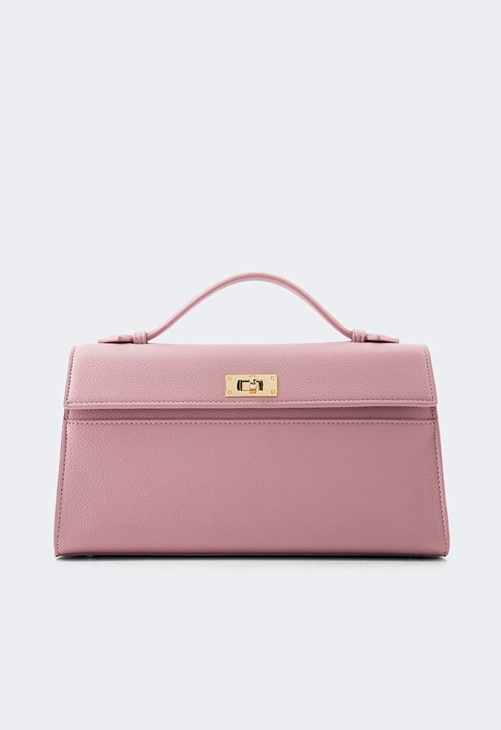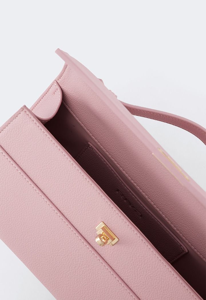 A luxurious choice for a clutch , featuring a textured PU leather design and a metallic lock in the center.