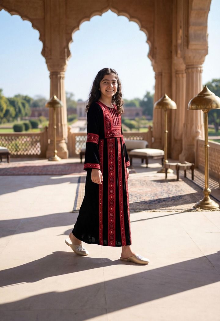 An embroidered traditional dress with heritage details that adds a refined, authentic touch to your look.