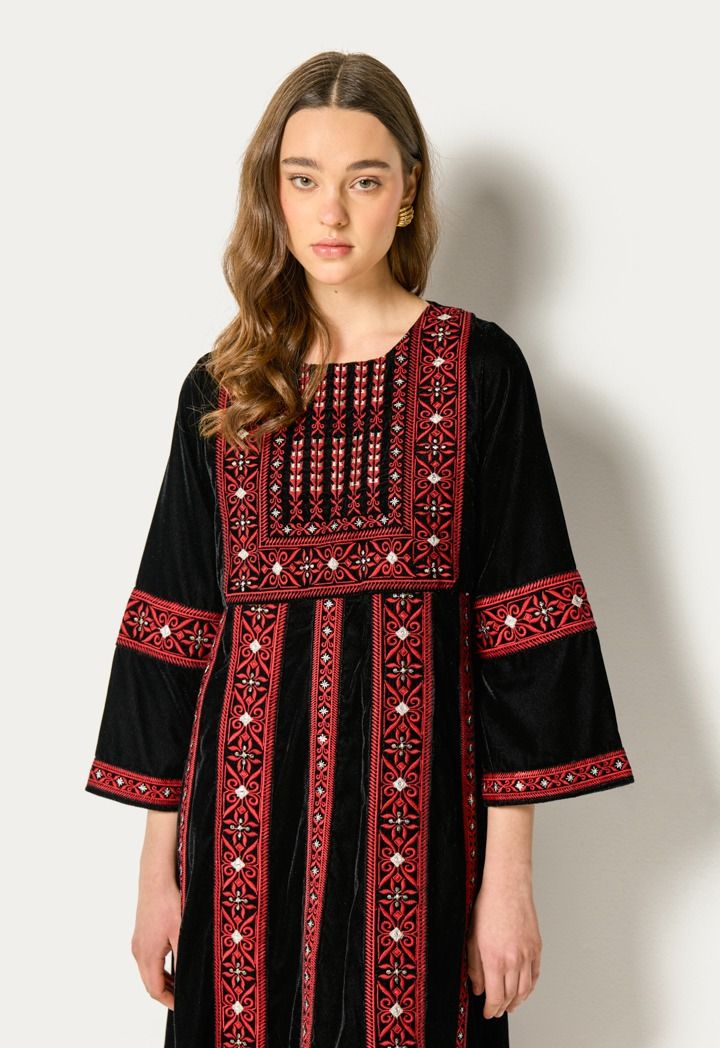 Traditional Embroidered Velvet Dress |