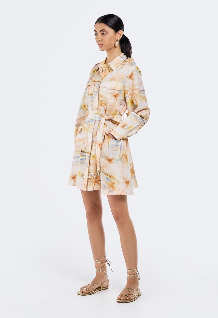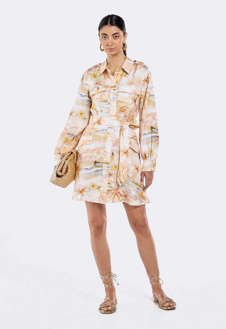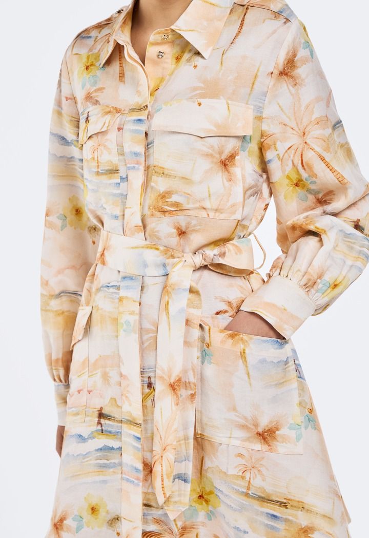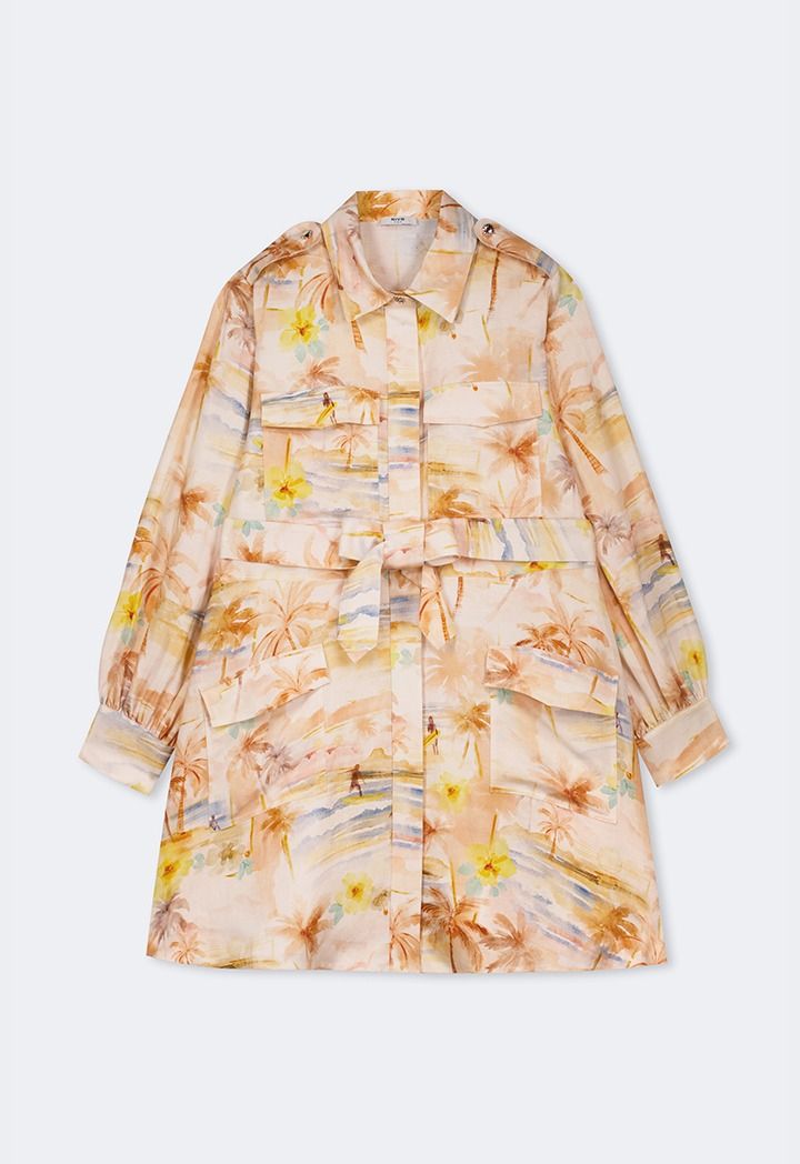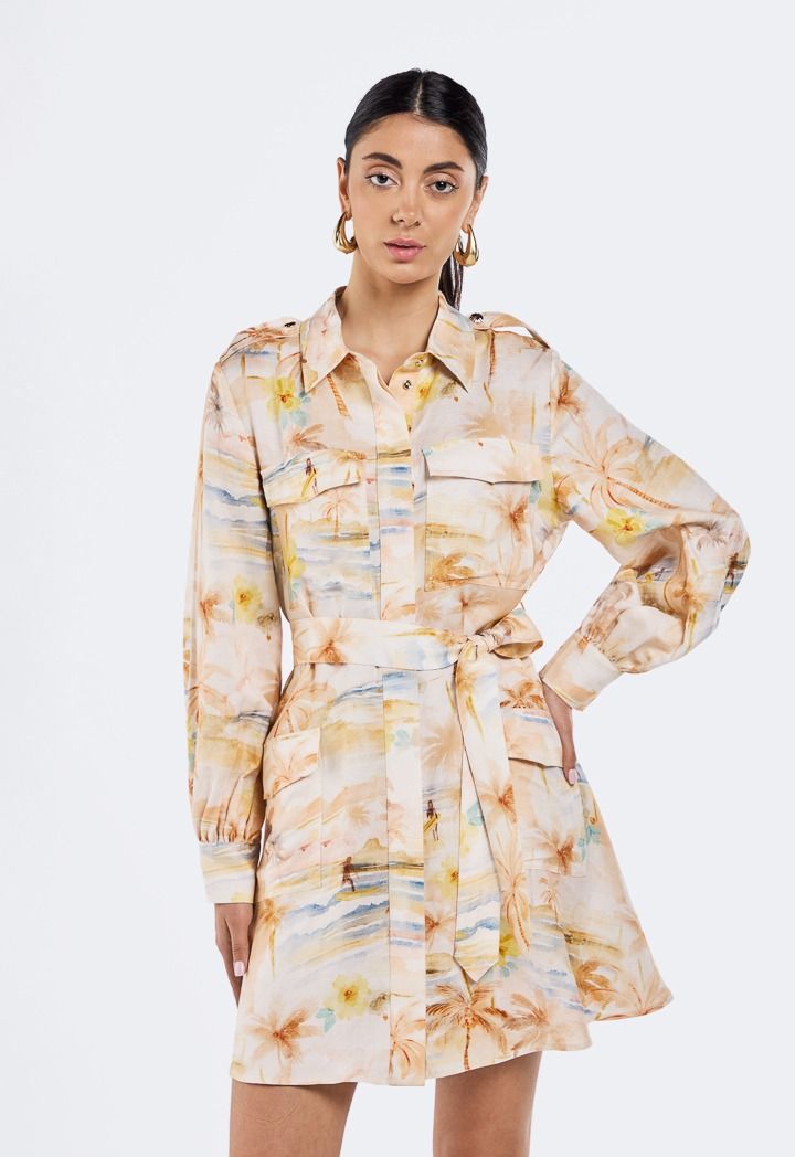 Design: Tropical Print, Multi Flap Pockets, Belted