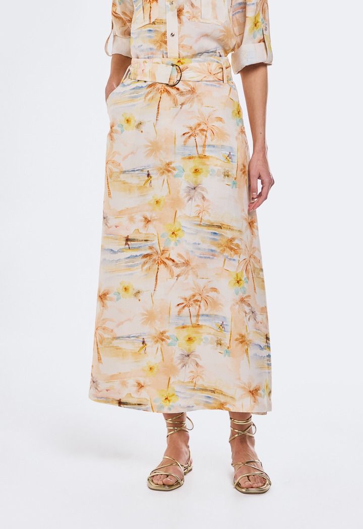 Tropical Print Belted Skirt |