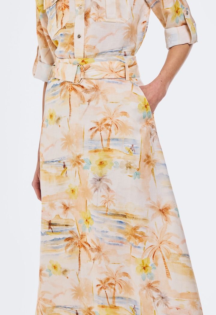 Design: Tropical Print, Belted, Flared