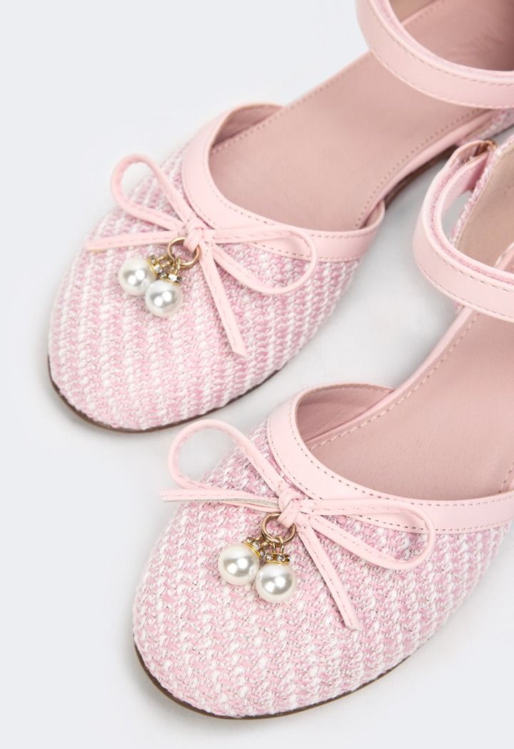 Tweed Flat Ankle Strap Shoes for Girls | Riva Fashion