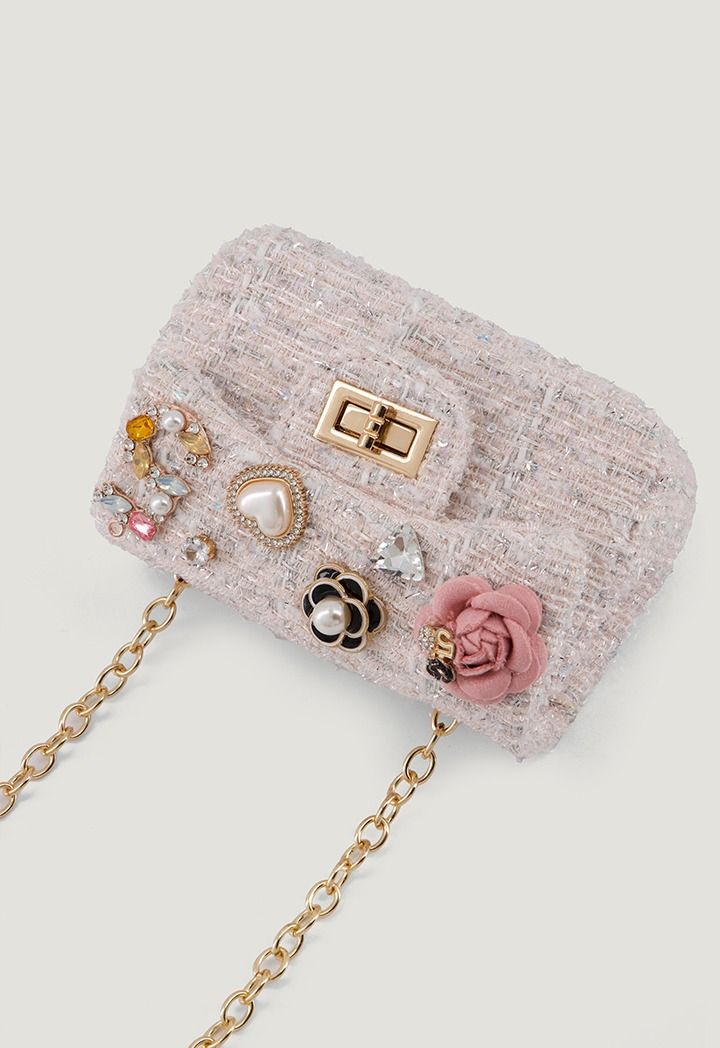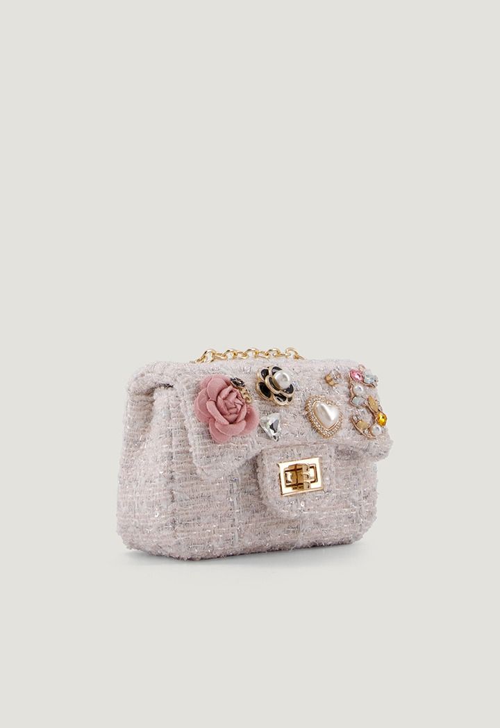Tweed Flower Pearl Mini Bag |