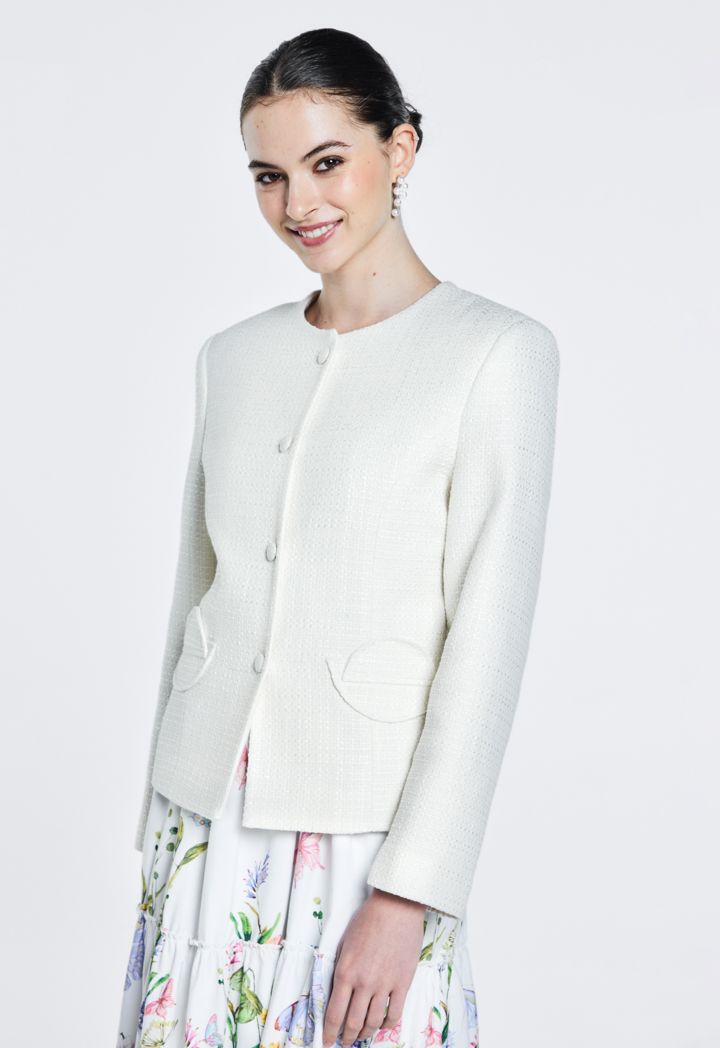 Timeless style gets some edge with this Jacket. Classic tweed is upgraded with Solid design and faux pockets.