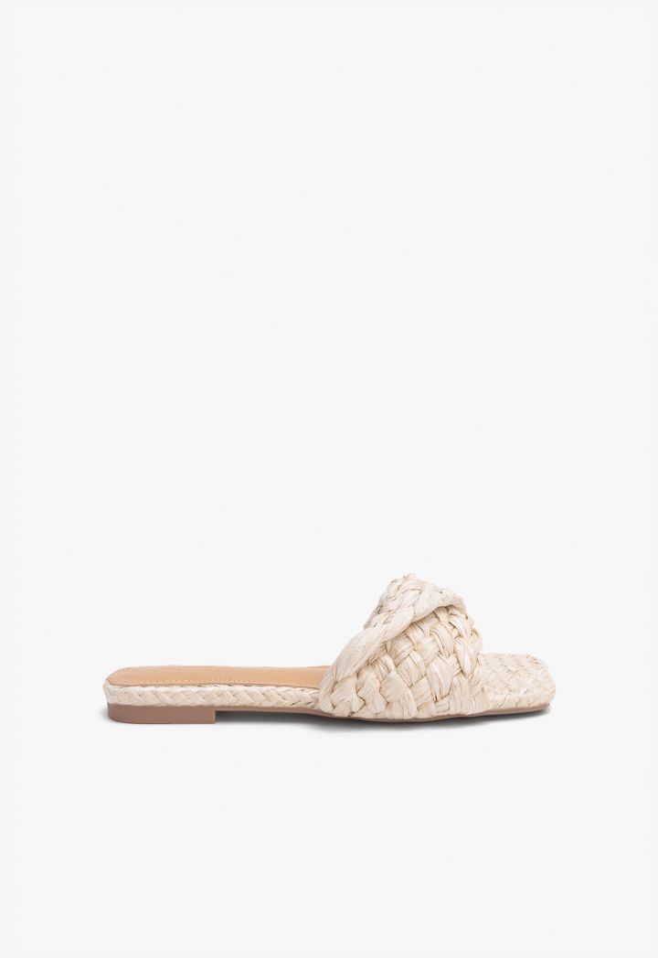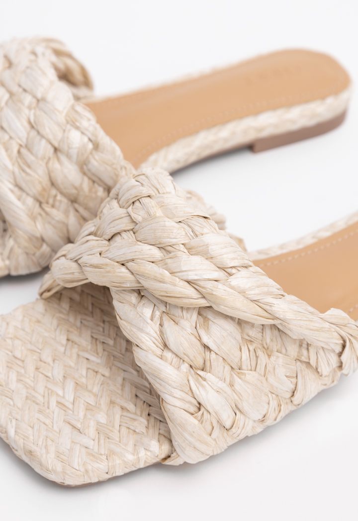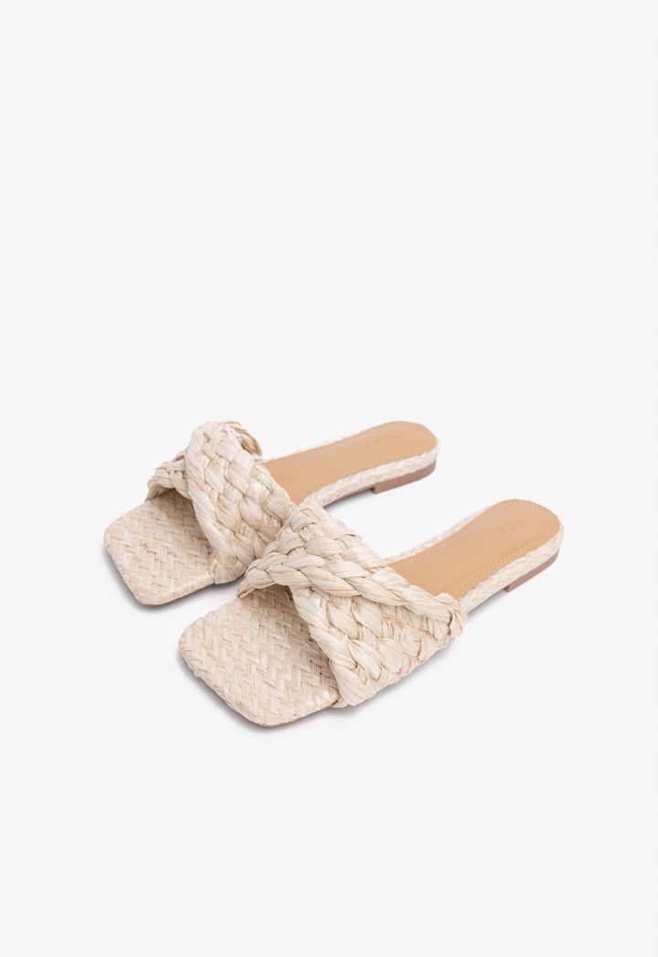 Add a touch of modernity to your look with this pair of twisted flat sandals.