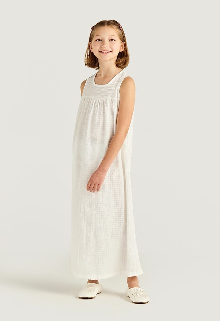 A breezy white dress with a draped kaftan and rope belt for an easy, laid back Ramadan look you can wear day or night.