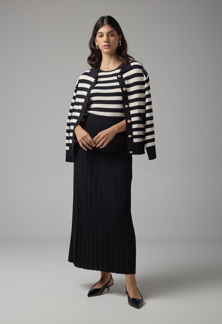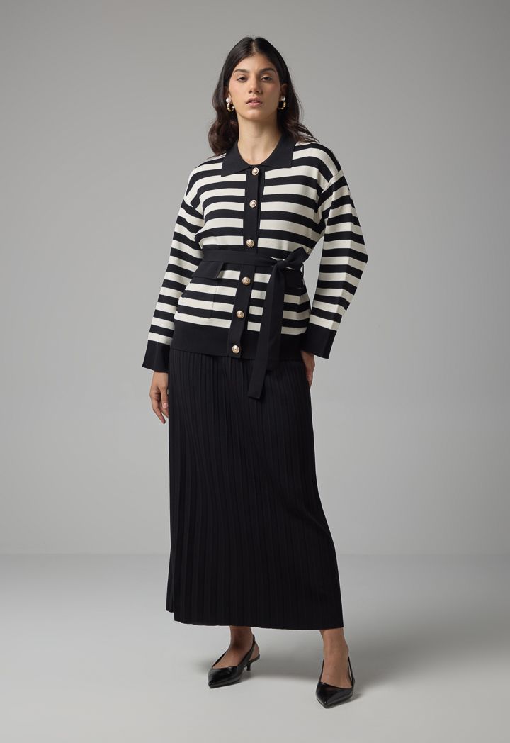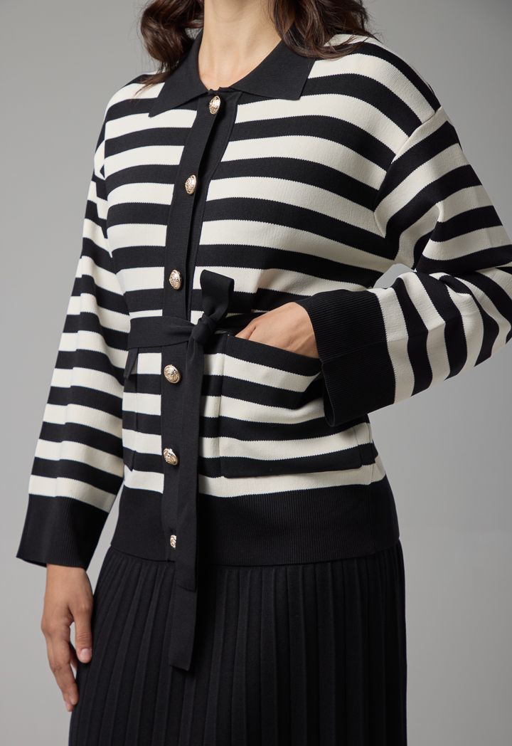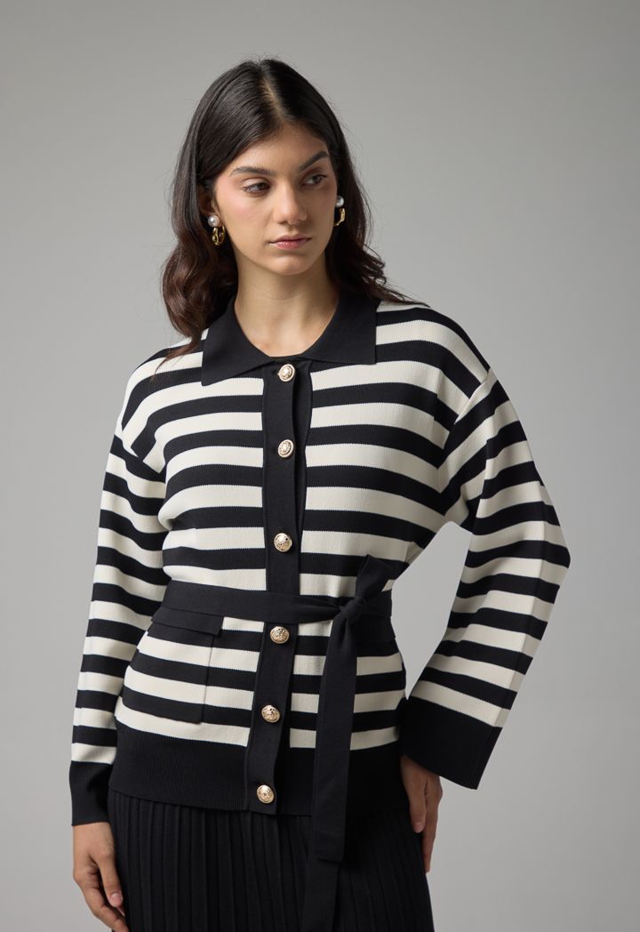 Where comfort meets elegance, this Striped Cardigan is not only comfortable but stylish enough to wear on your next Occasion.
