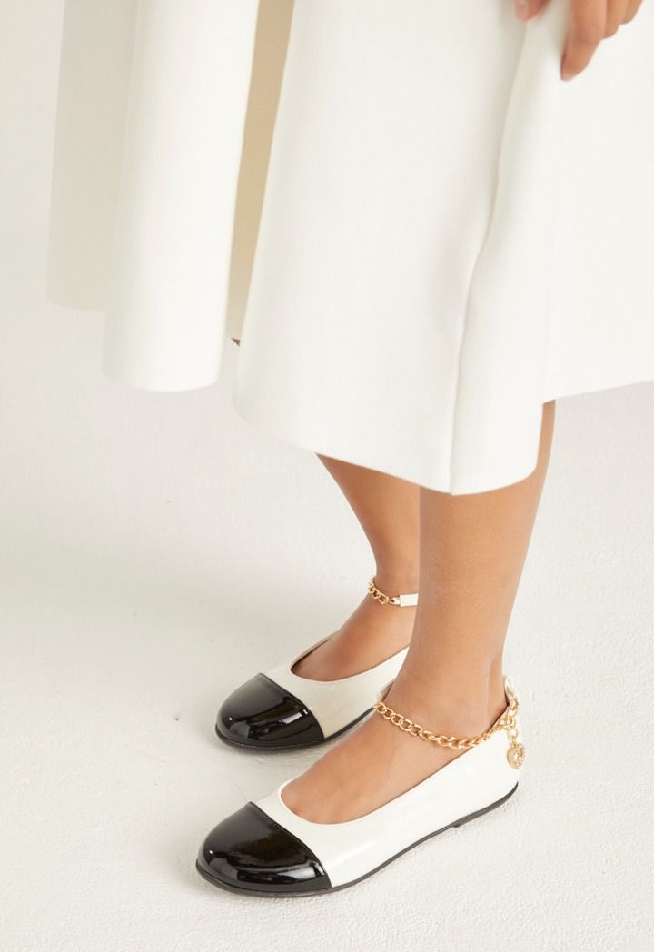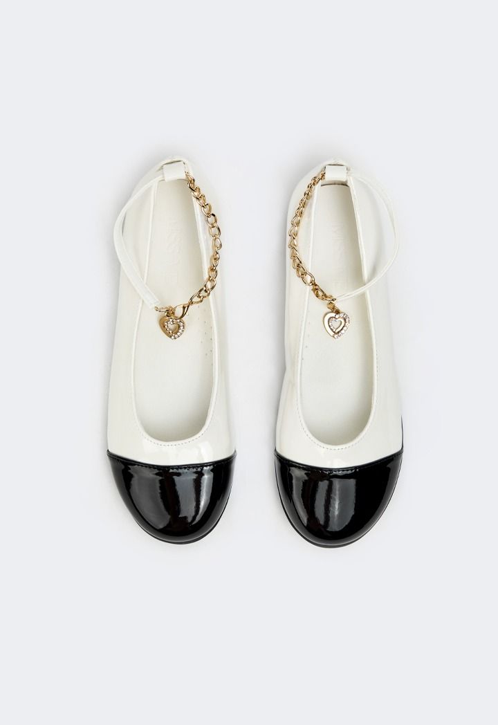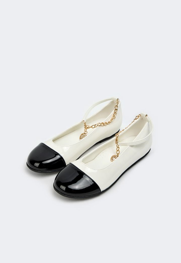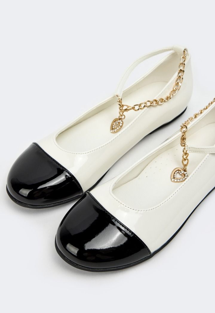 Expand your daughters collection of shoes with this pair of two toned flat ballerinas.