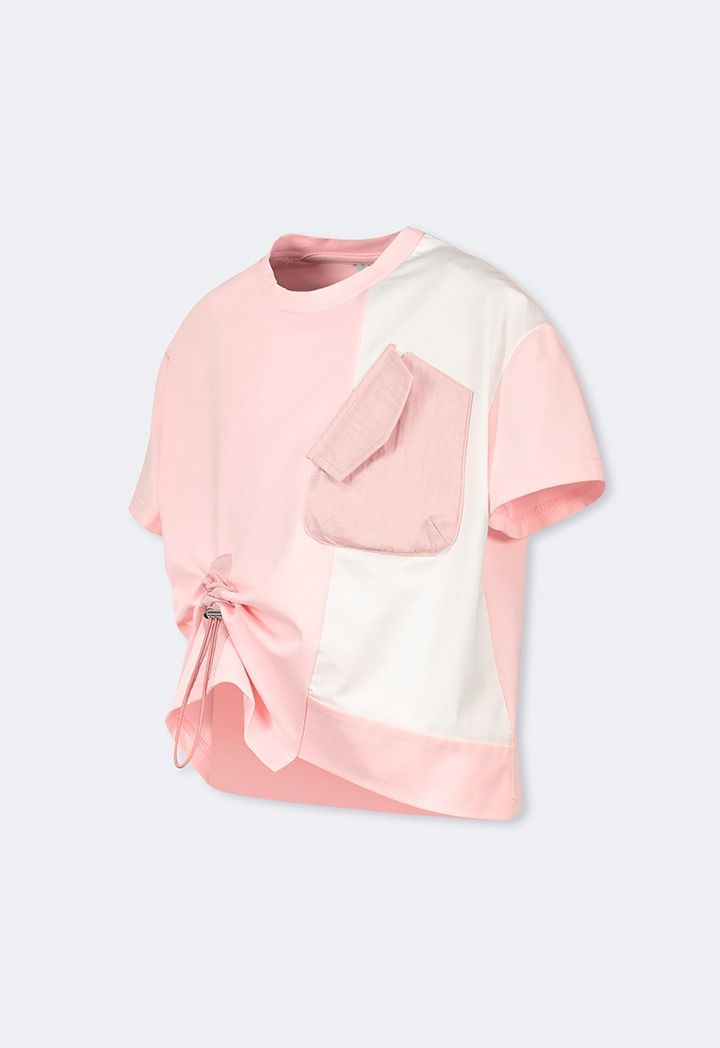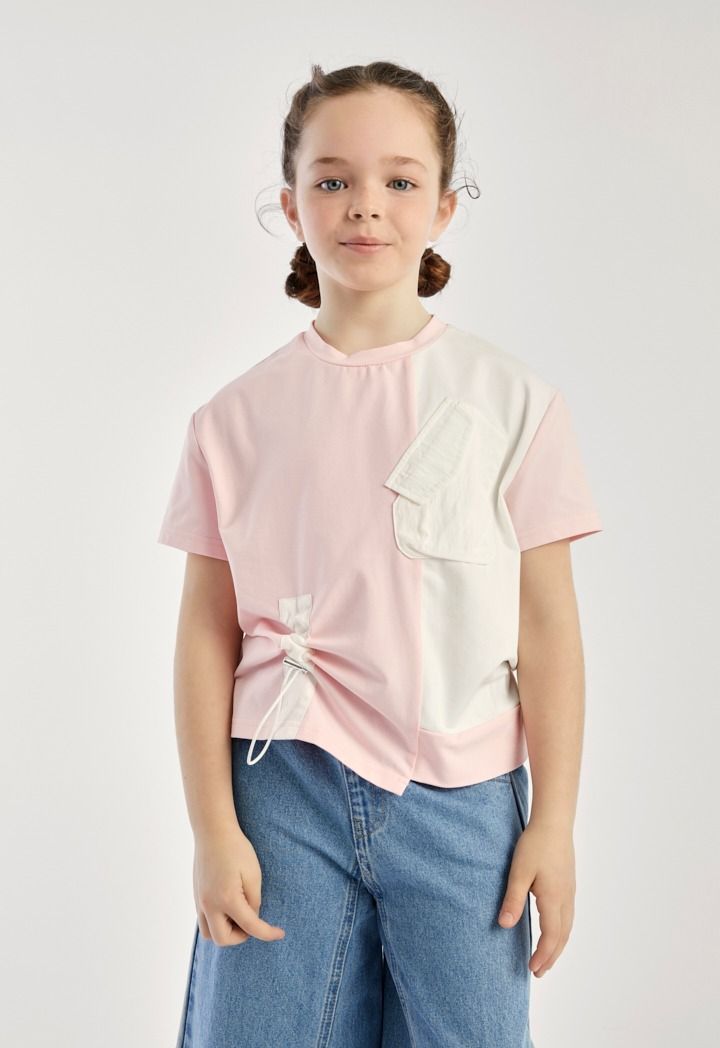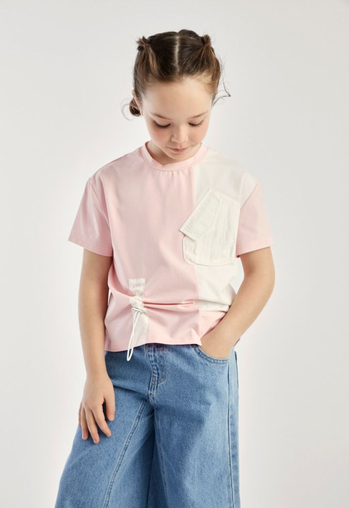 Elevate your little one's look with a stylish two-tone t-shirt featuring drawstring details.