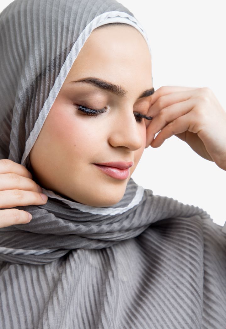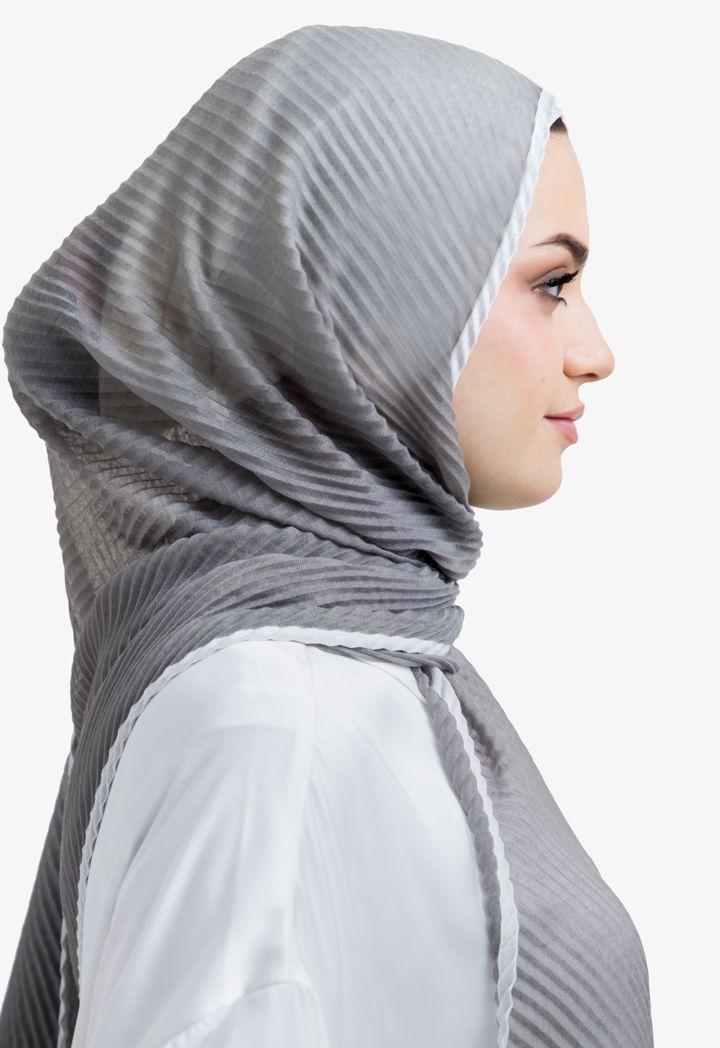 Satisfy your taste with this hijab with its unique design, featuring a two toned color in addition to electric pleating.