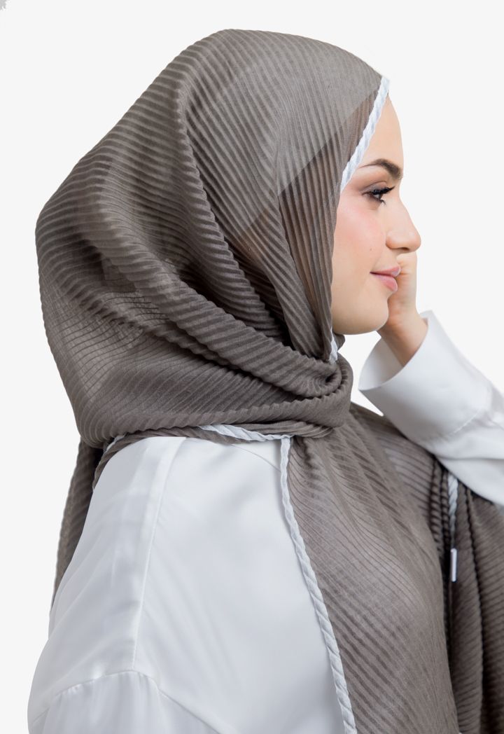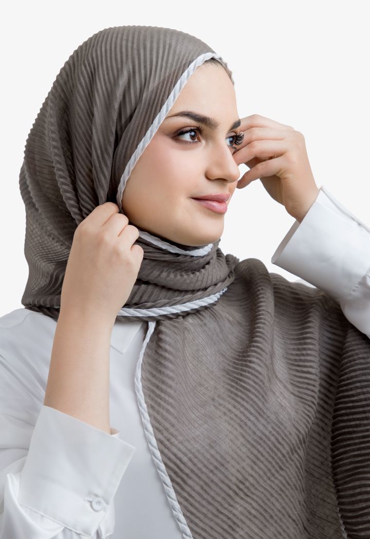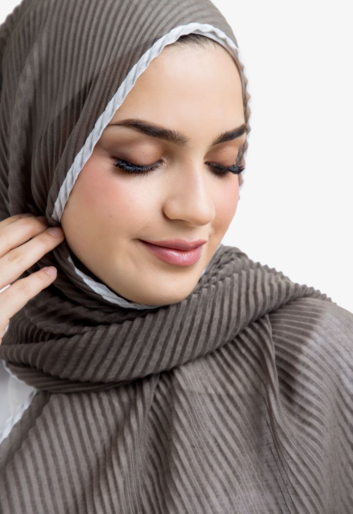 Satisfy your taste with this hijab with its unique design, featuring a two toned color in addition to electric pleating.