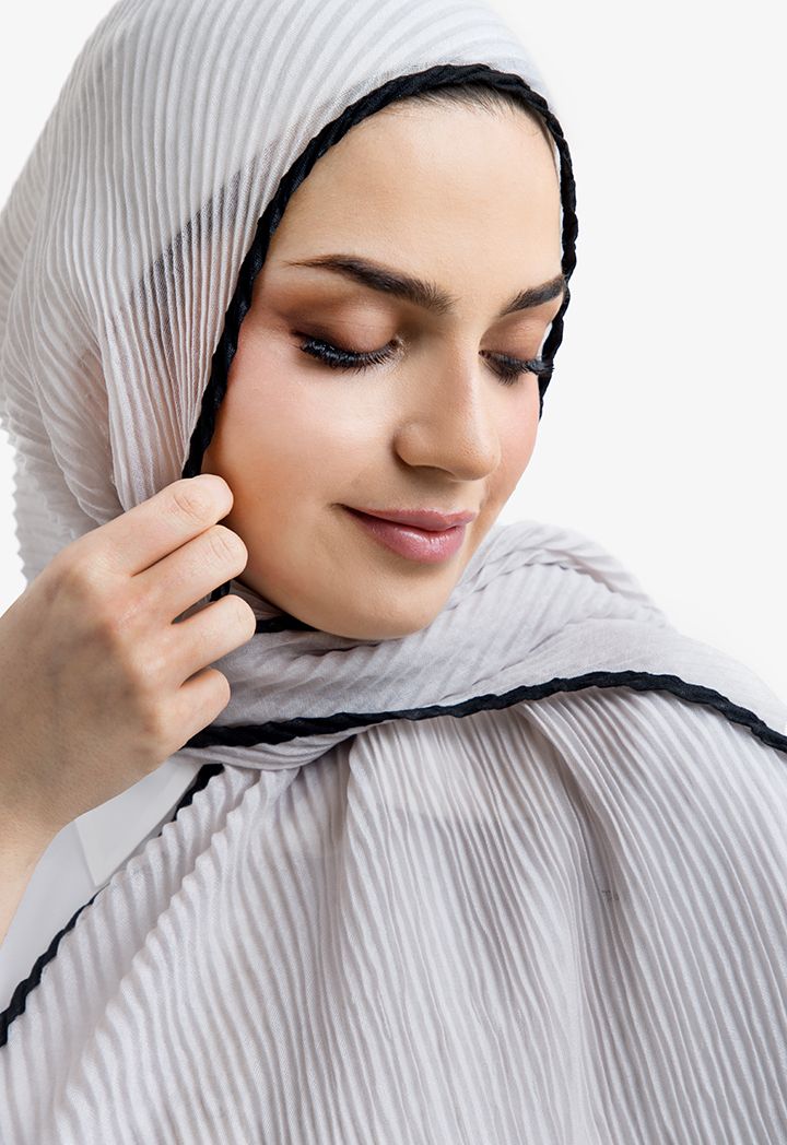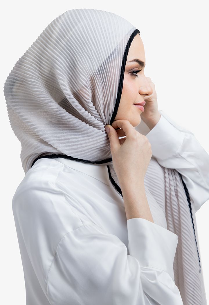 Satisfy your taste with this hijab with its unique design, featuring a two toned color in addition to electric pleating.