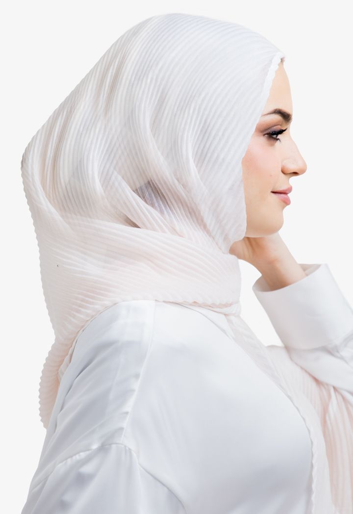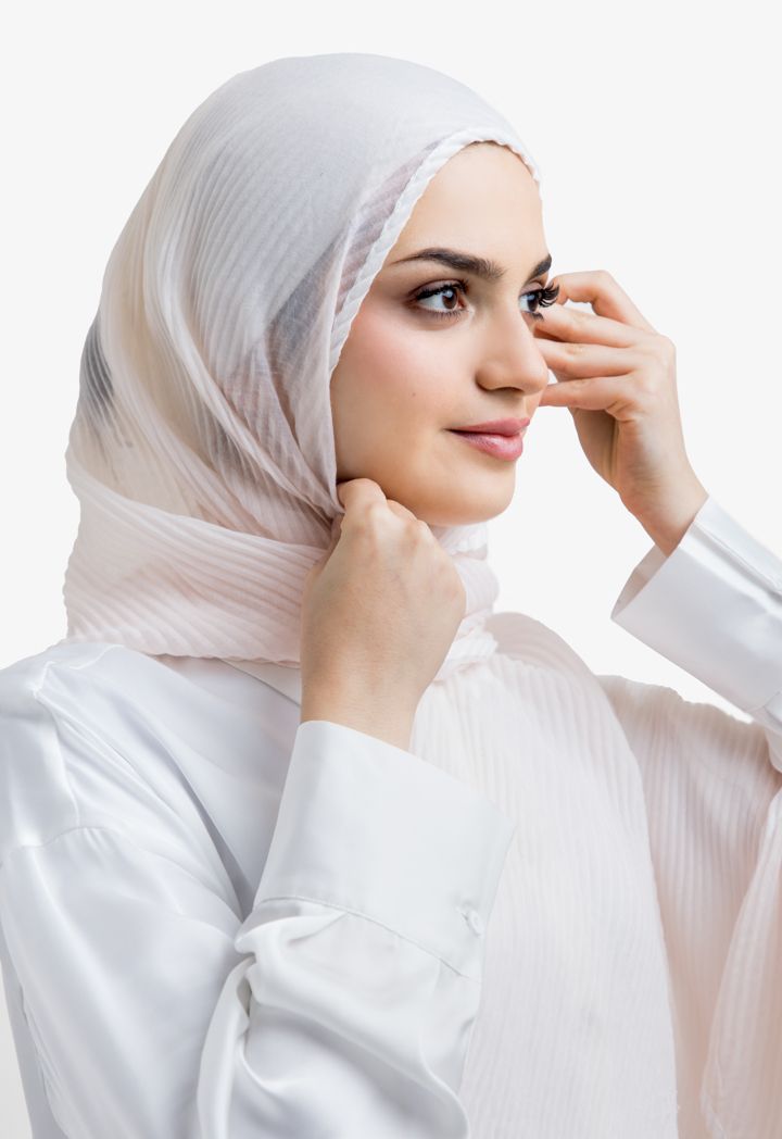 Satisfy your taste with this hijab with its unique design, featuring a two toned color in addition to electric pleating.