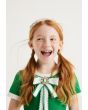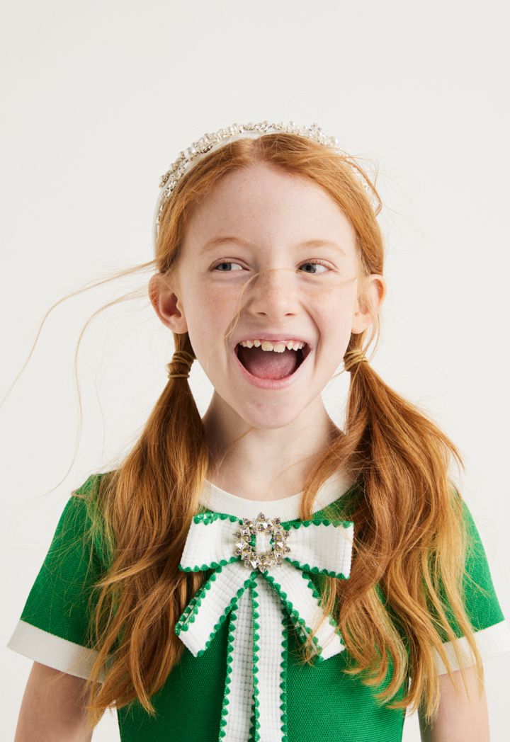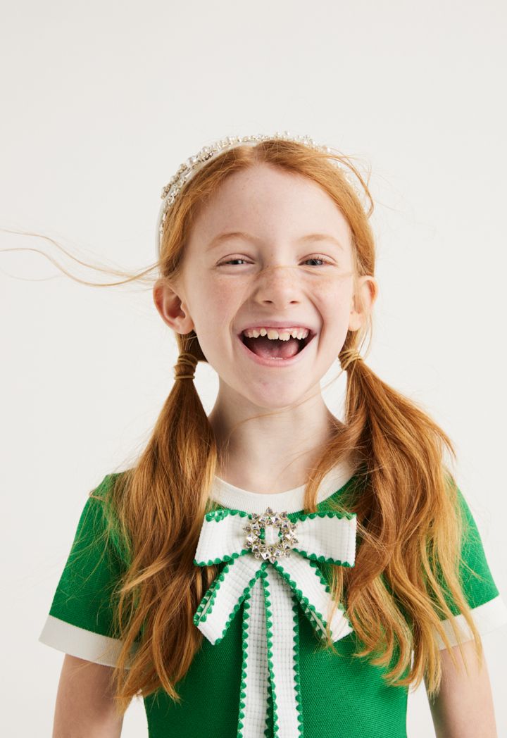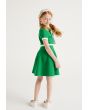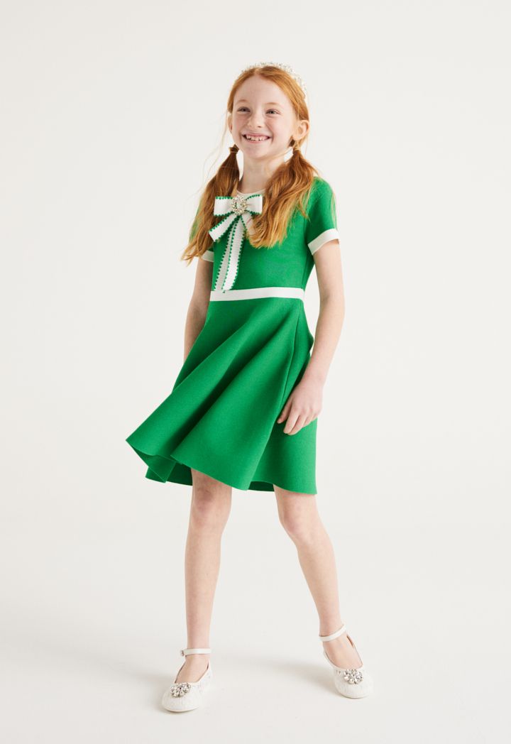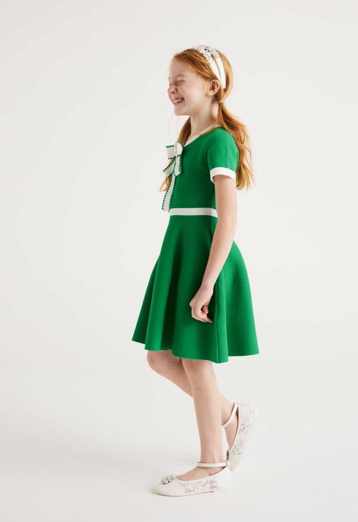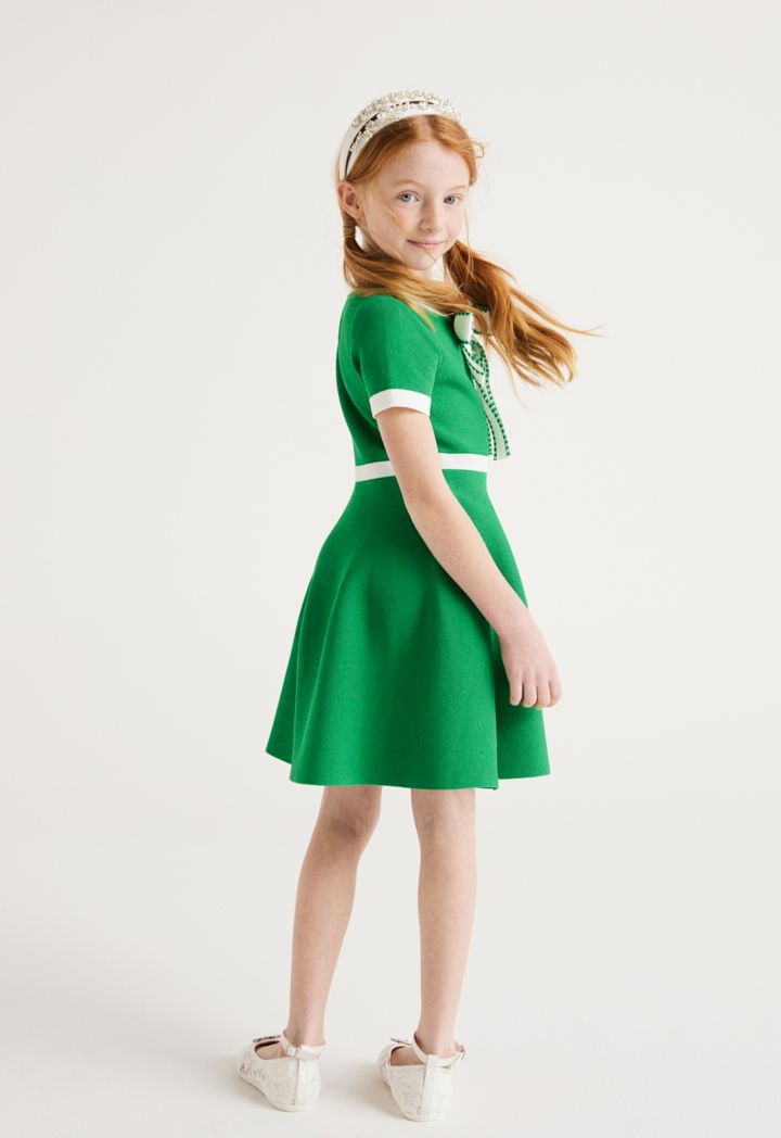 Update your daughters sense of style wearing this dress with a classic touch of a two toned design .