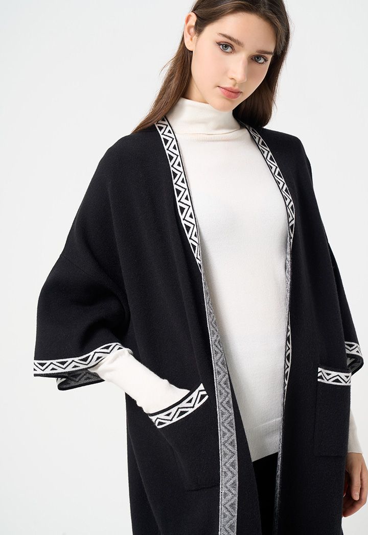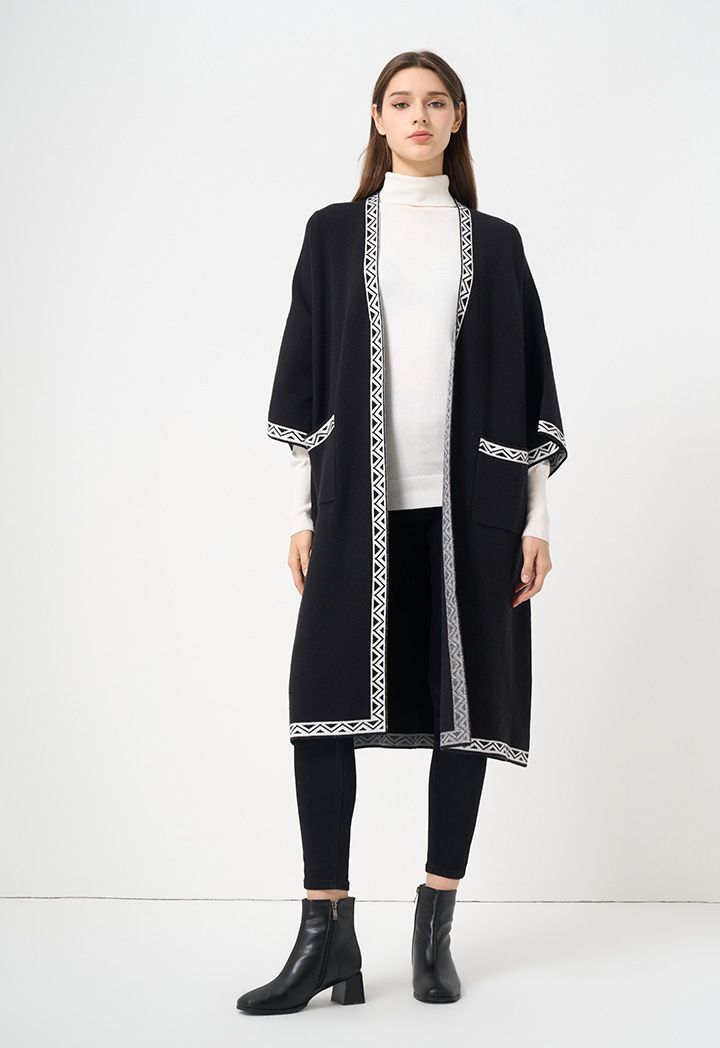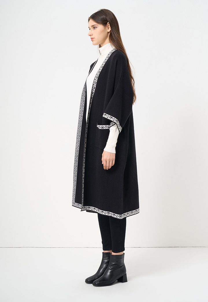 A solid knitted cardigan that features embellished hems to add to its appeal.