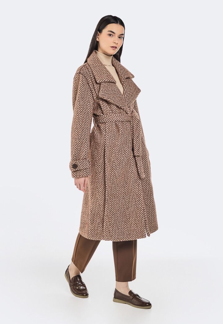 An iconic coat that is fit for your winter outfits thanks to its intricate two toned design.