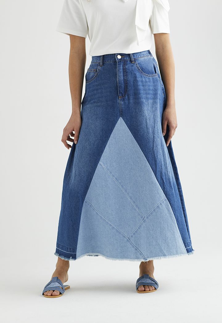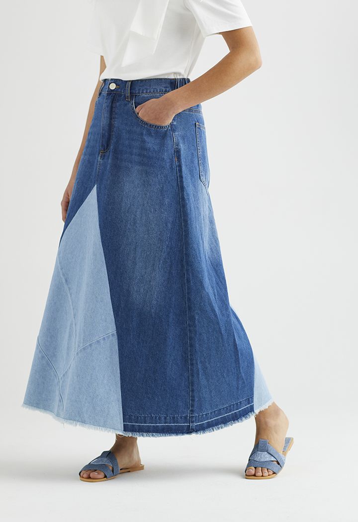 Two Toned Maxi Denim Skirt |
