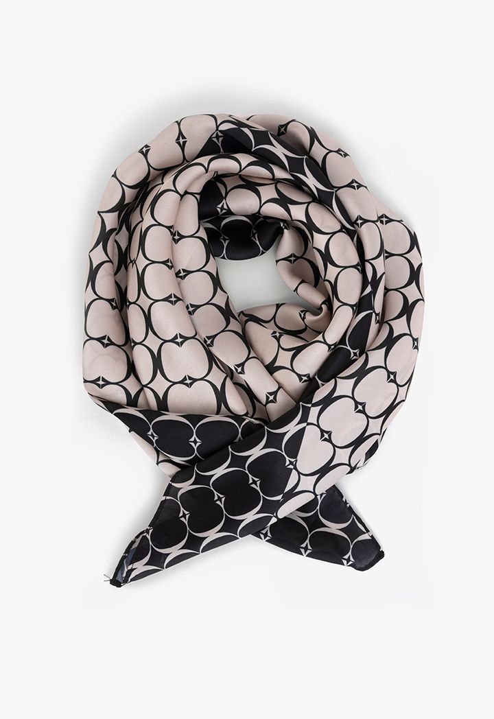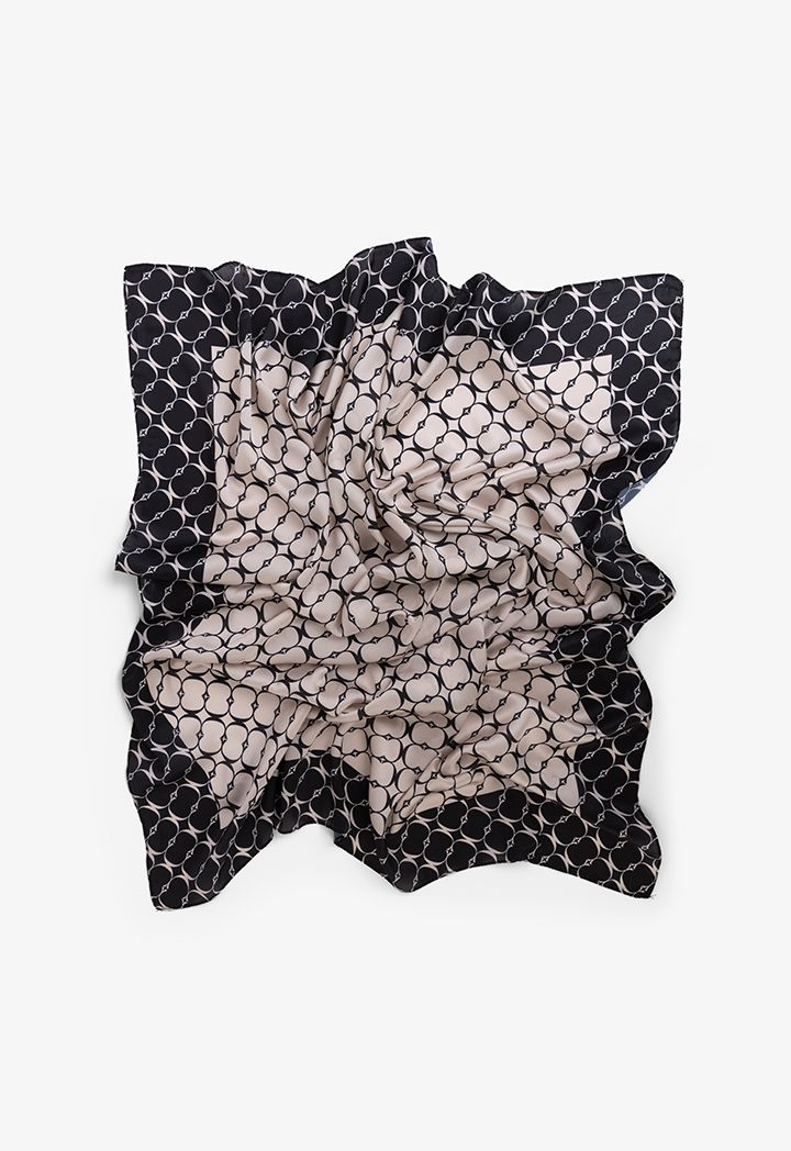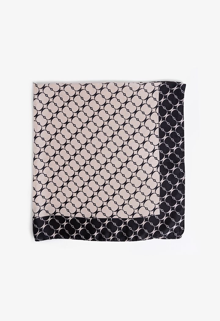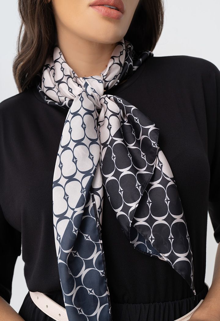 A scarf that features a two toned printed monogram scarf that would be a stylish addition.