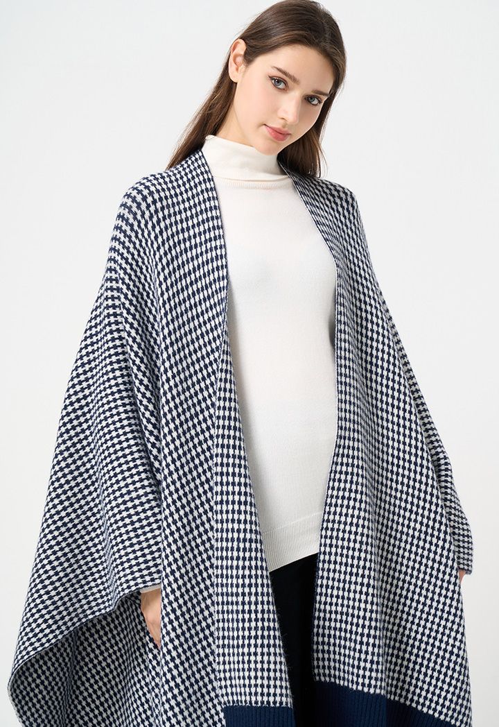 Multiply your special collection of ponchos with this two toned patterned winter poncho.