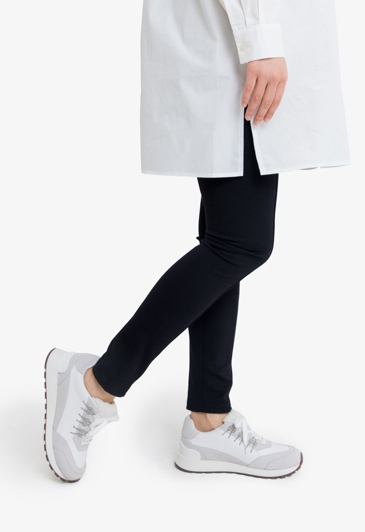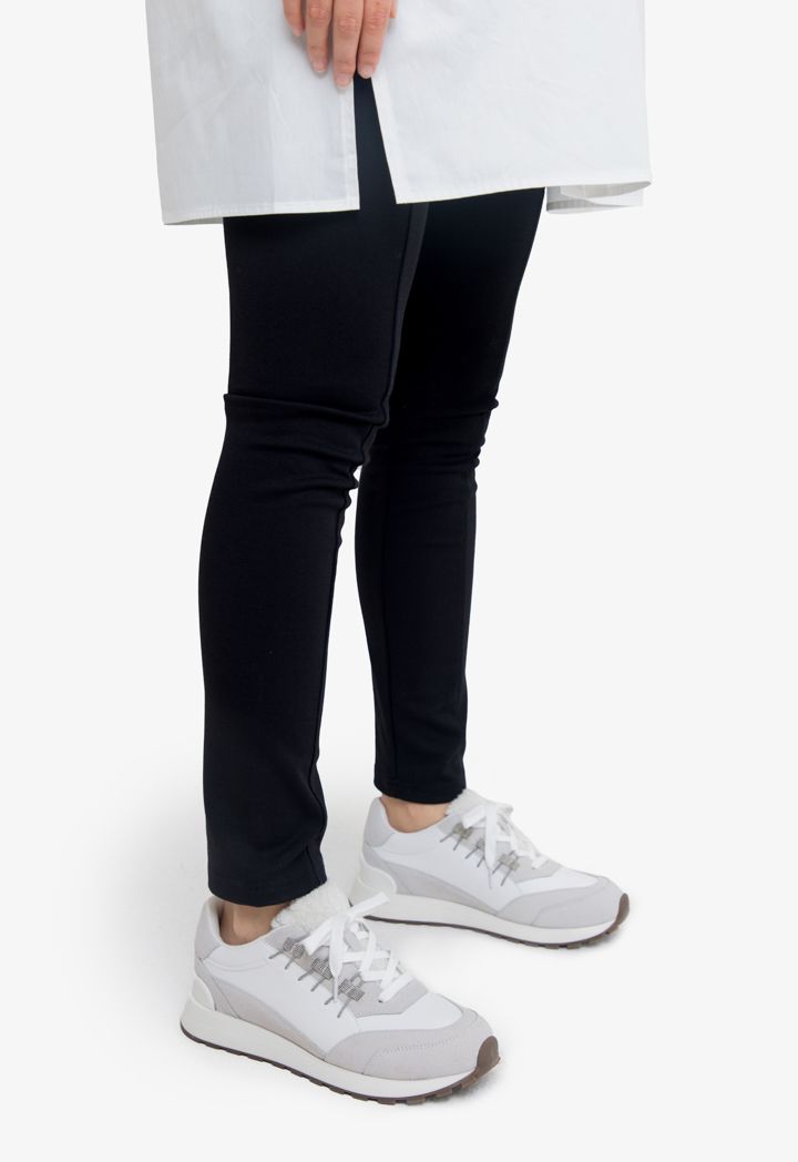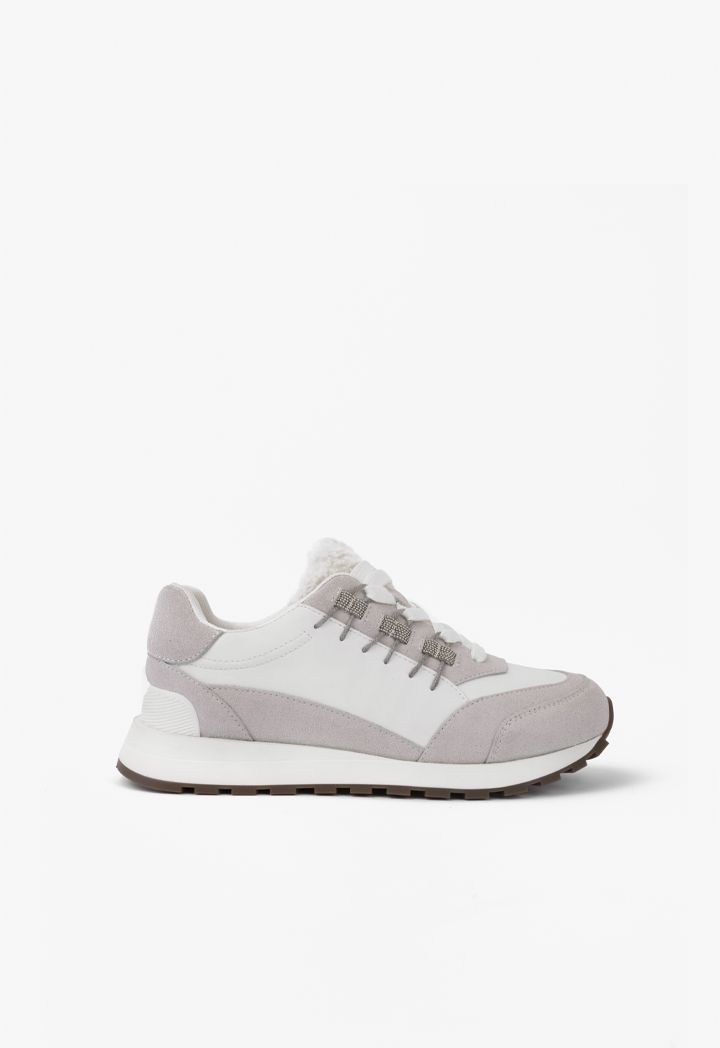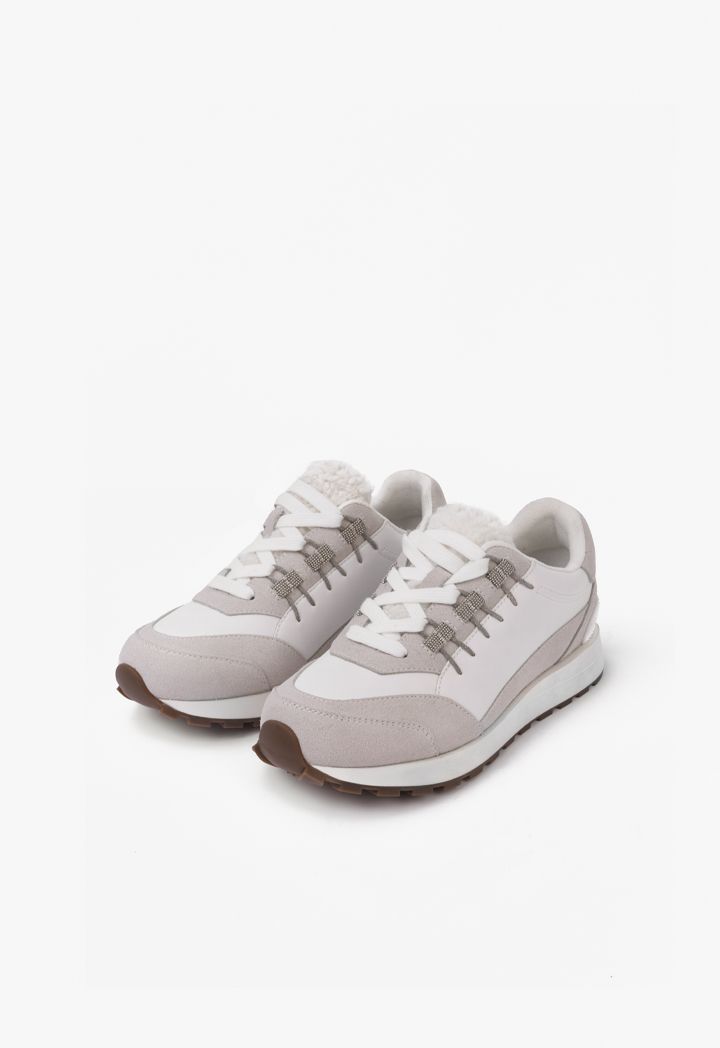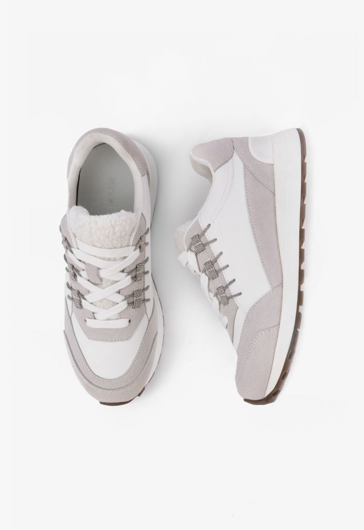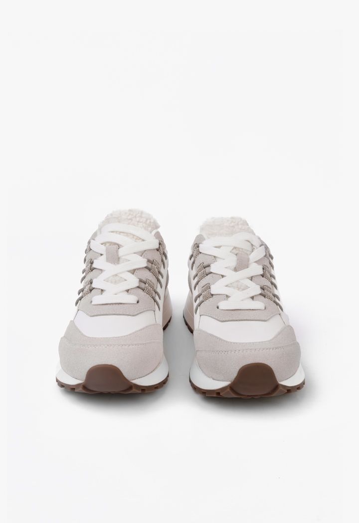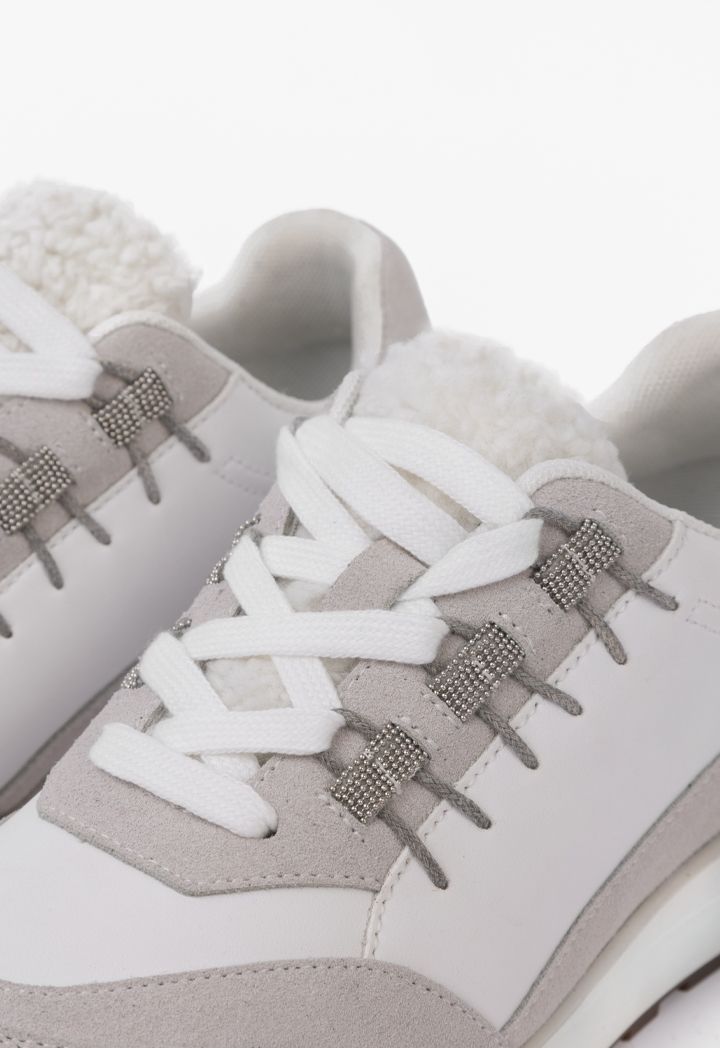 Embrace your feet with comfort but in style when you get this shearling embellished pair of sneakers.