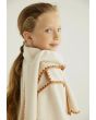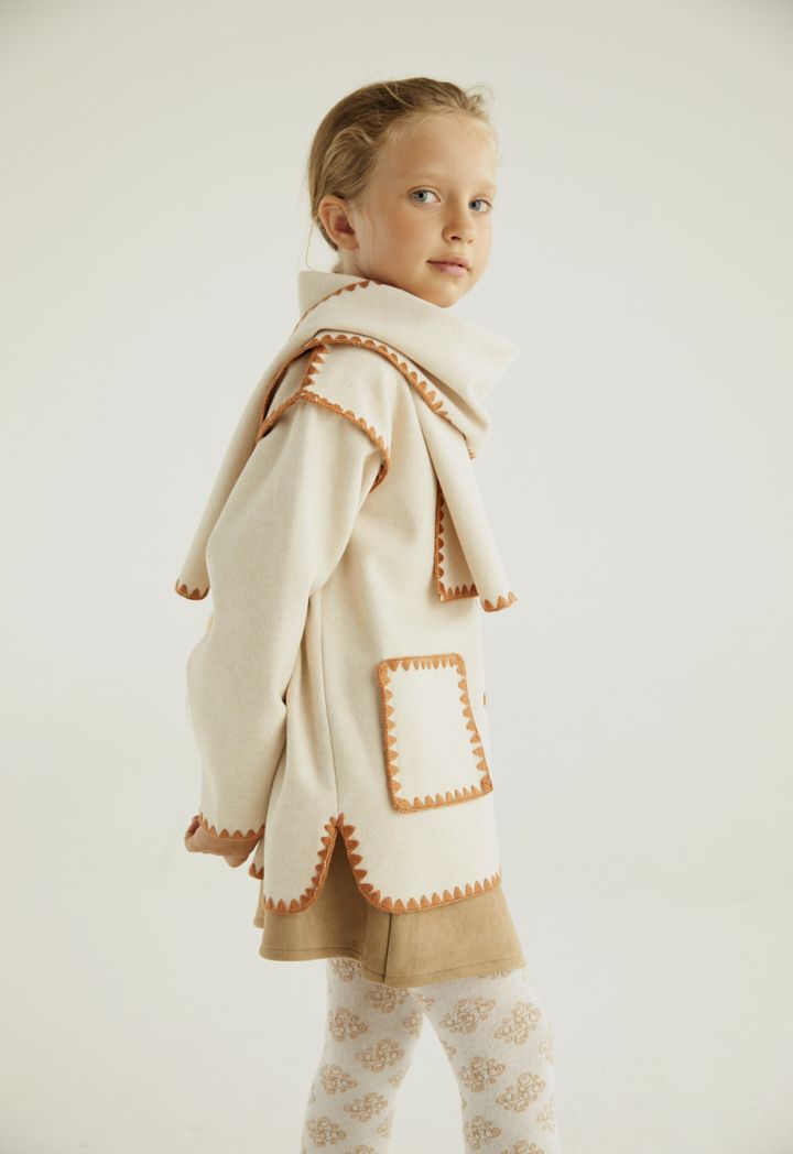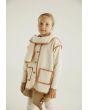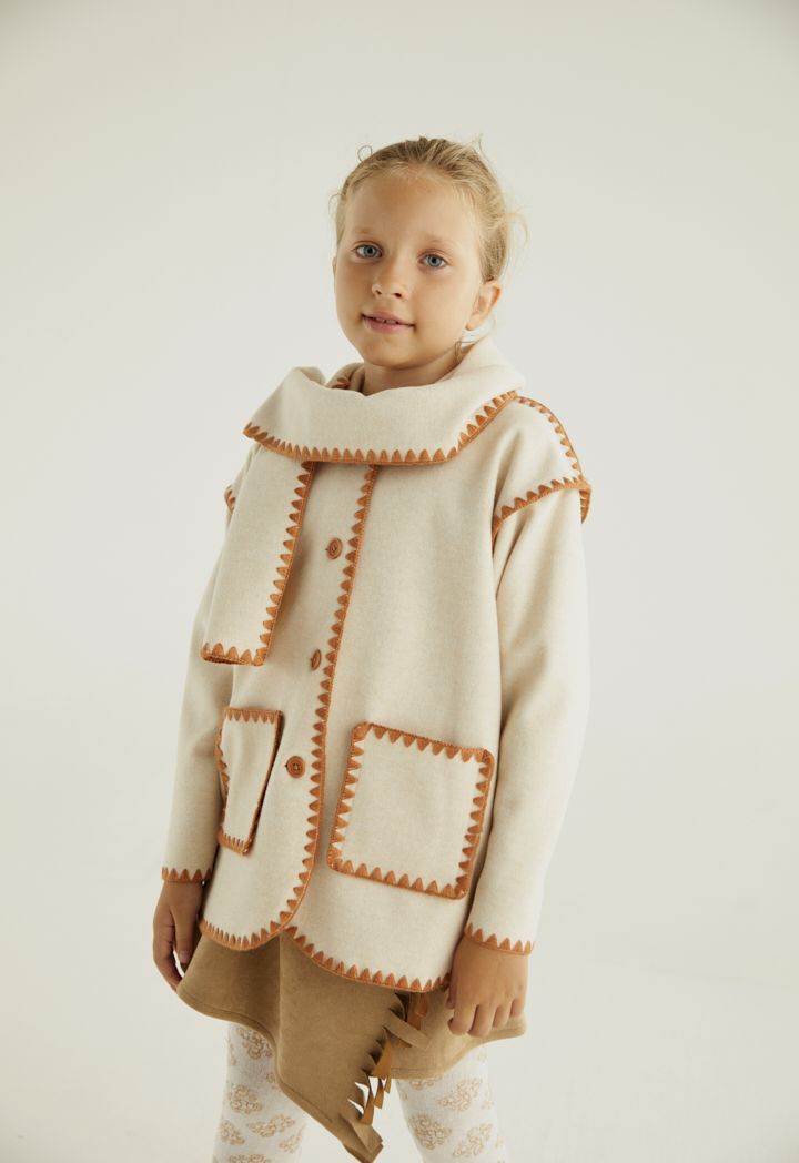 An alluring shirt jacket that features a knitted two toned design and front buttons .